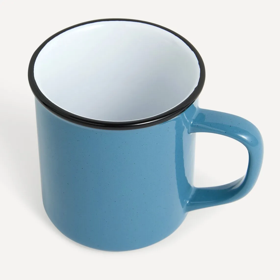 Чашка в форме кружки с ручкой и емкостью 370 мл, идеальна для чая или завтрака. Он изготовлен из керамогранита с имитацией эмали, материала, который отличается высокой стойкостью и легко моется в посудомоечной машине.