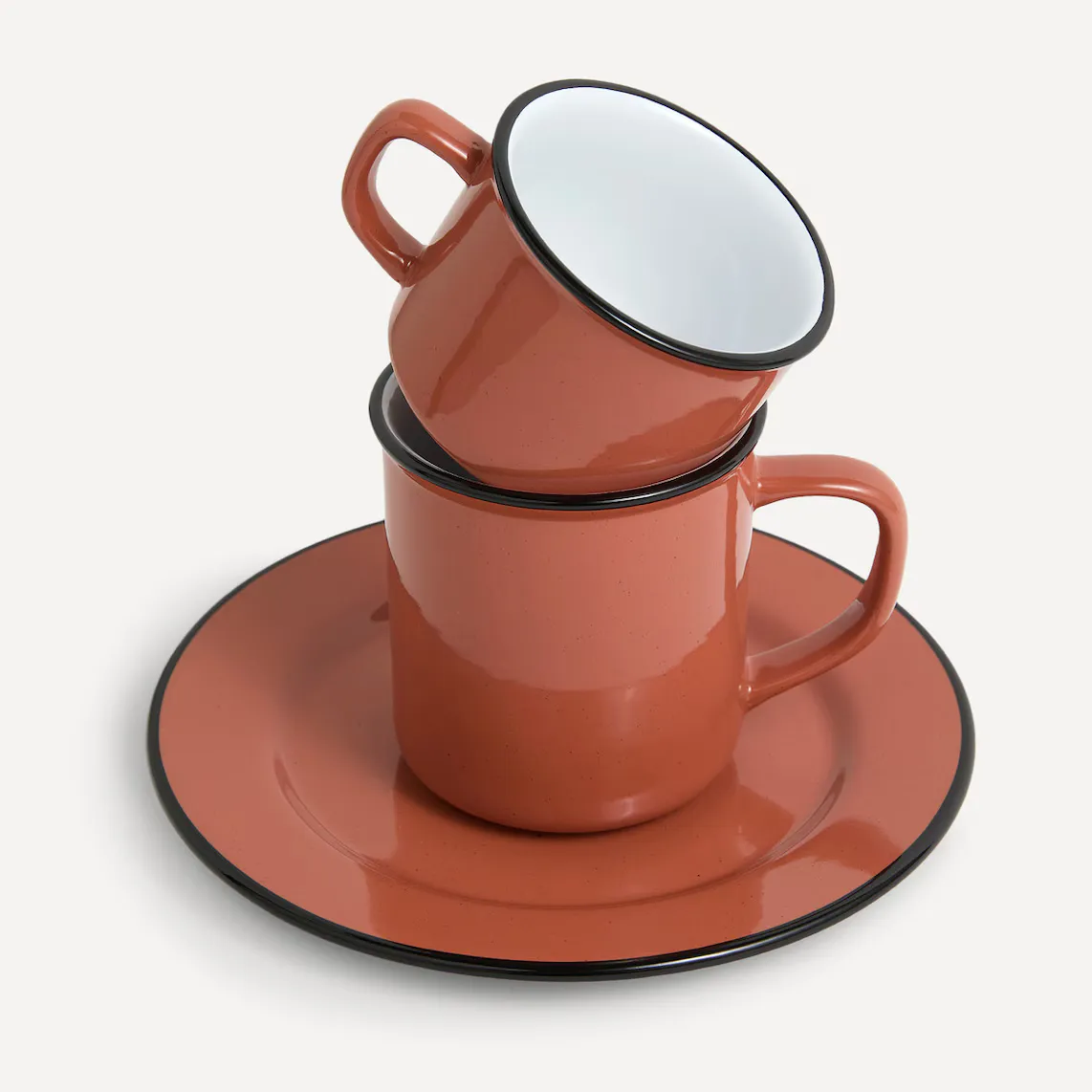Кружка с ручкой емкостью 230 мл идеальна для подачи кофе. Он изготовлен из керамогранита с имитацией эмали, материала, который отличается высокой стойкостью и легко моется в посудомоечной машине.
