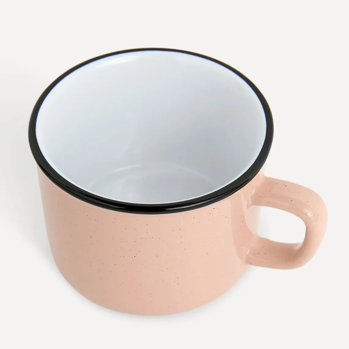 Кружка с ручкой емкостью 230 мл идеальна для подачи кофе. Он изготовлен из керамогранита с имитацией эмали, материала, который отличается высокой стойкостью и легко моется в посудомоечной машине.