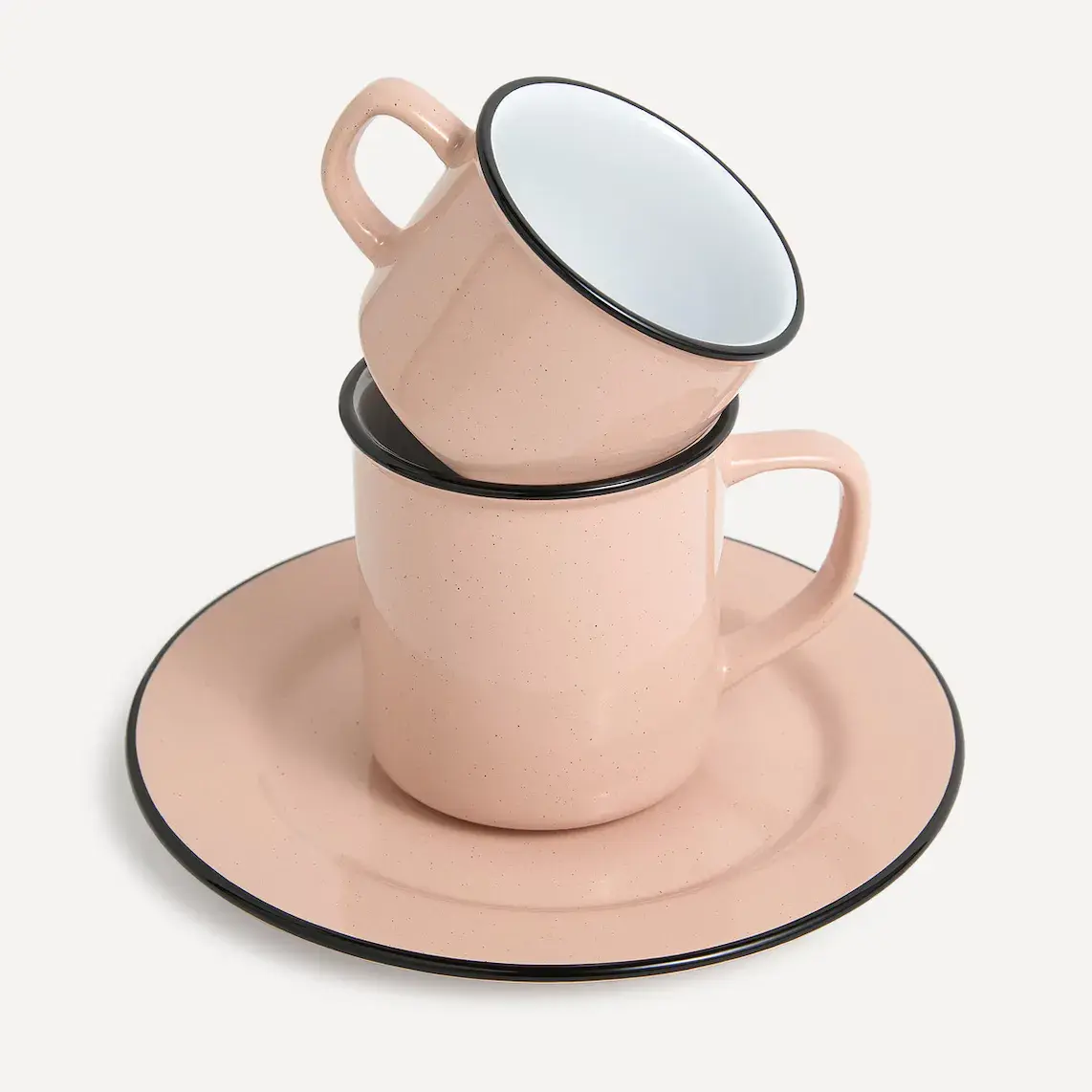 Чашка в форме кружки с ручкой и емкостью 370 мл, идеальна для чая или завтрака. Он изготовлен из керамогранита с имитацией эмали, материала, который отличается высокой стойкостью и легко моется в посудомоечной машине.
