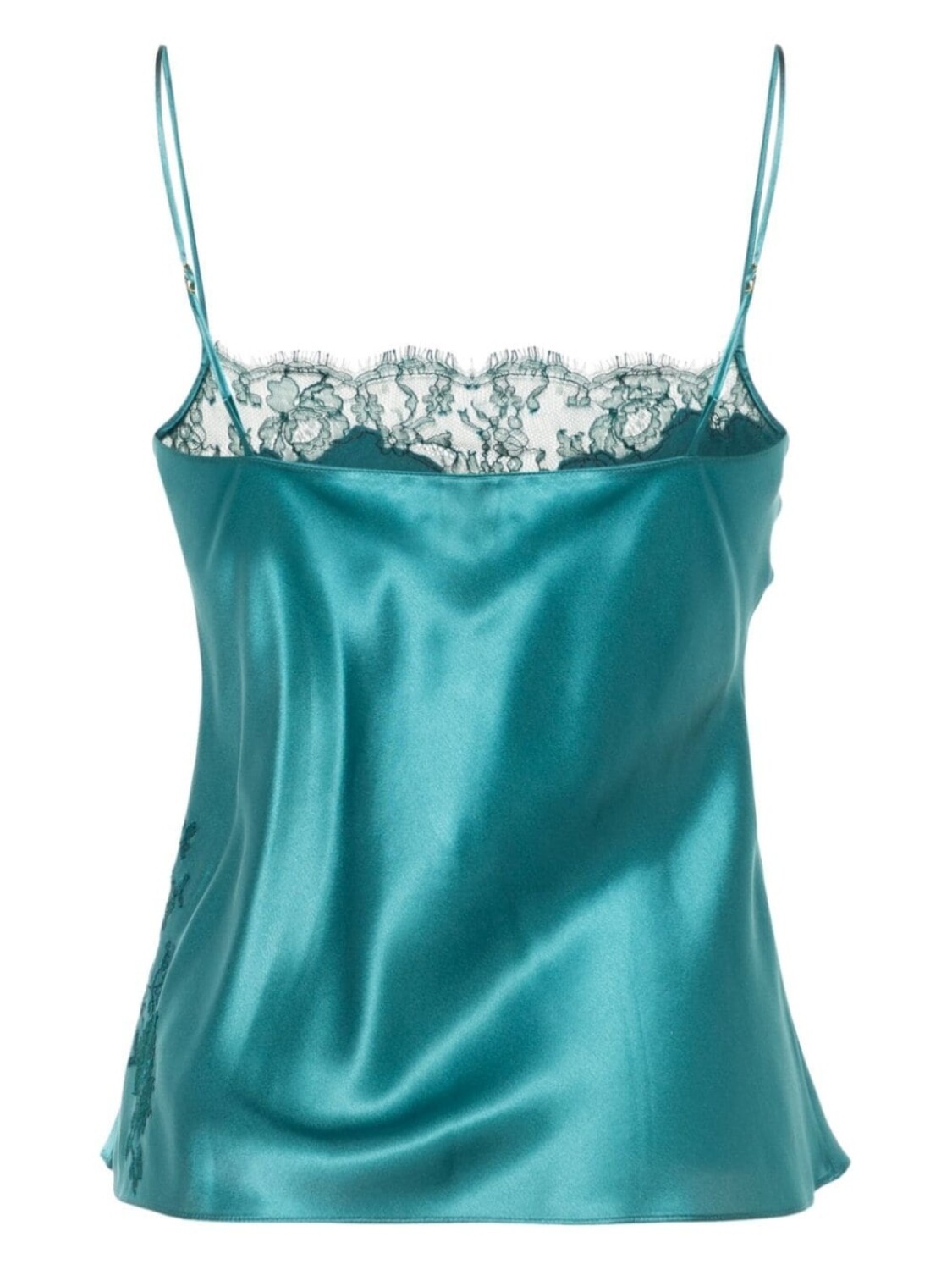Шелковый топ на бретелях с кружевом Carine Gilson, синий