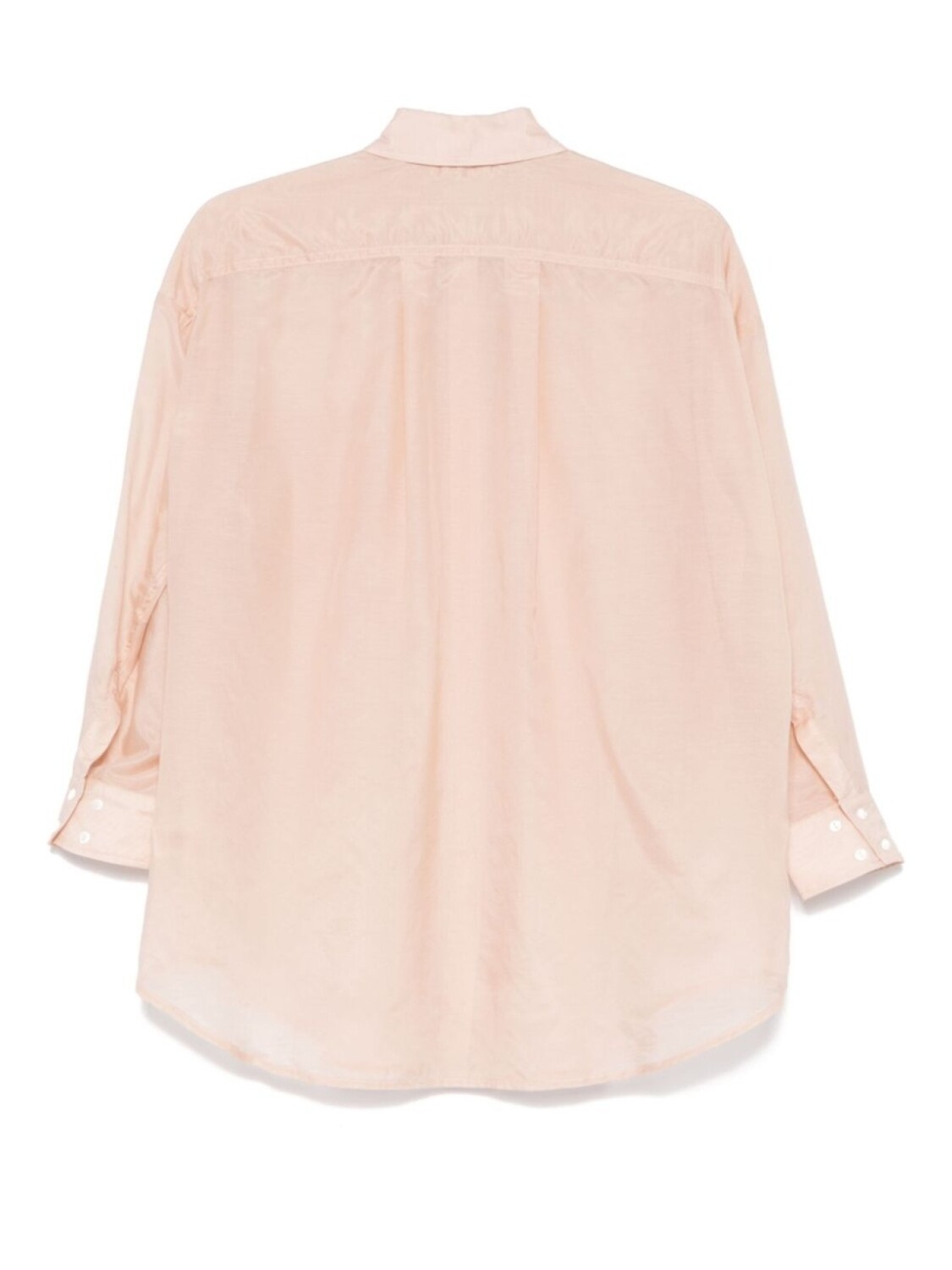 Бежевый, смесь хлопка и шелка, полупрозрачный дизайн, застежка на пуговицах спереди, классический воротник, приспущенные плечи, длинные рукава, манжеты на пуговицах, встречная складка, закругленный подол
