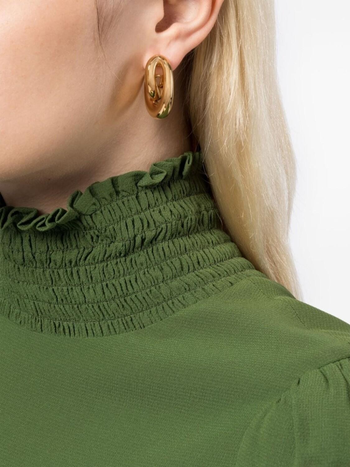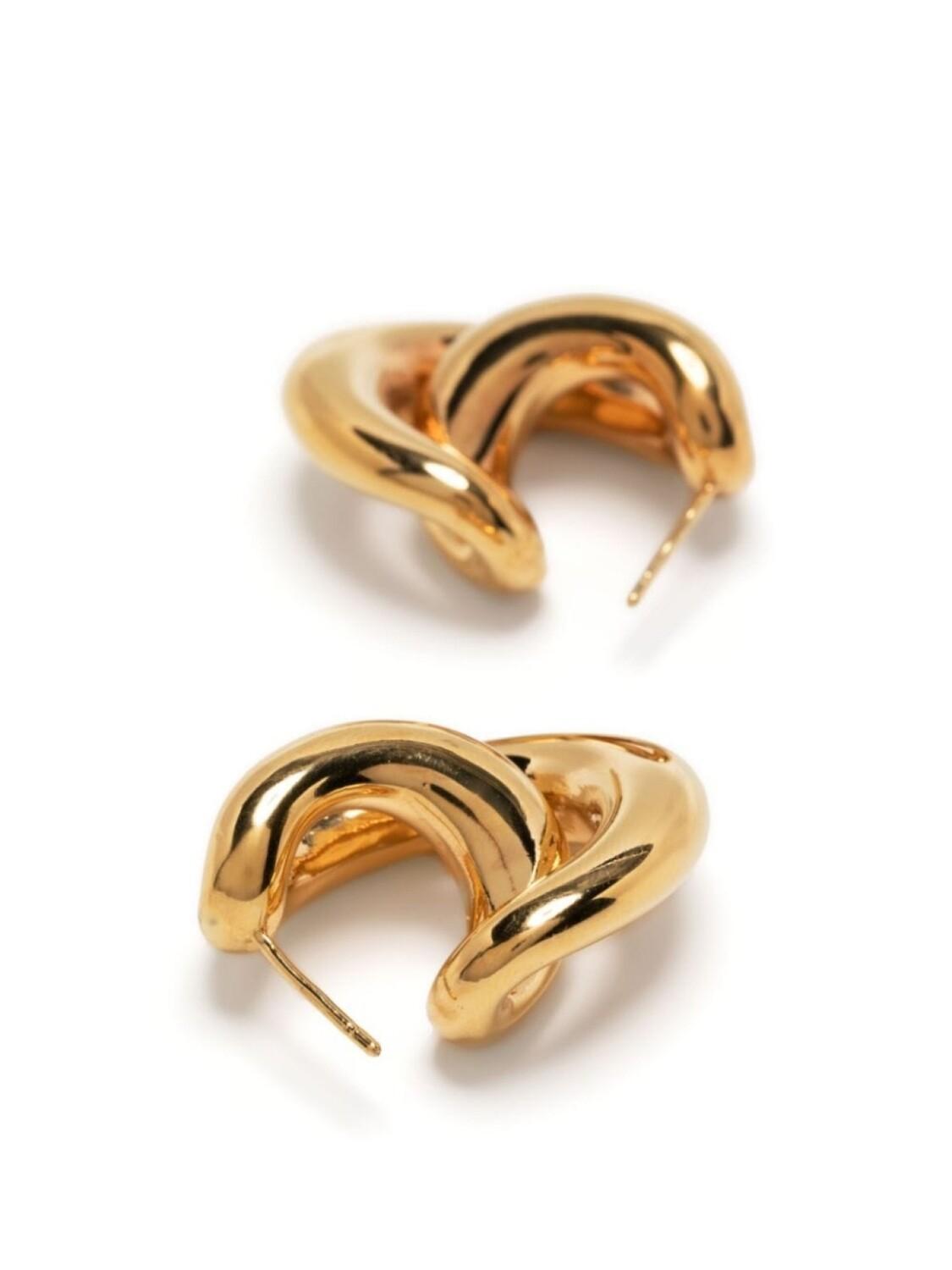 Золотистый, позолоченное серебро 925 пробы (вермей), кольца скульптурной формы, глянцевая фактура, застежка-штифт и для проколотых ушей. В комплект входят две серьги.