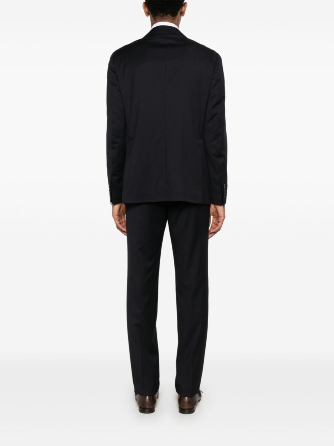 Подробнее о товаре: • темно-синий • вирджинская шерсть • застежка на пуговицах спереди • зазубренные лацканы • знаковая булавка • подплечники • длинные рукава • манжеты на пуговицах • защипы • прорезной карман на груди • два кармана с клапанами по бокам • две боковые шлицы сзади • частичная подкладка • потайная застежка на молнии и пуговицах • петли для ремня • стрелки • два диагональных кармана по бокам • два прорезных кармана на пуговицах сзади