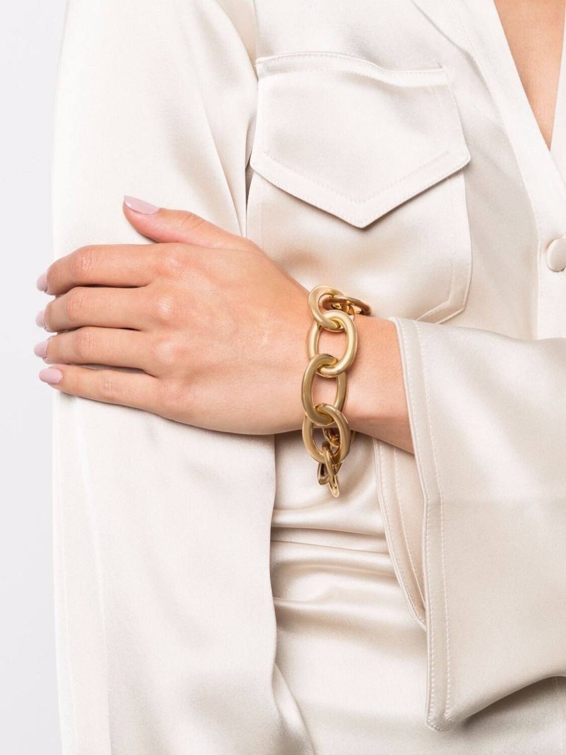 Покрытие из золота, выгравированный логотип, крупные кольца и канатная цепь. Цвет: золотистый.