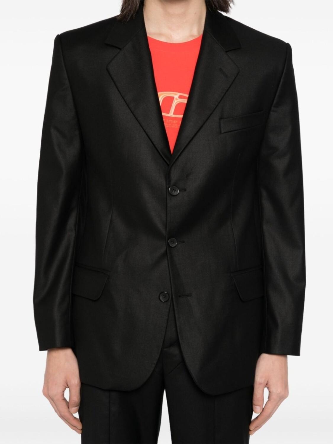 Highlight:, черный, смесовая шерсть, Пиджак:, заостренные лацканы, длинные рукава, манжеты на пуговицах, прорезной карман на груди, два передних кармана с клапанами, внутренние прорезные карманы, застежка на пуговицах спереди, Брюки:, расклешенный подол, два кармана по бокам, дизайн со вставками, петли для ремня, потайная застежка на молнии и пуговицах, Это унисекс-модель. Обратите внимание, что для нее используется мужская размерная сетка.
