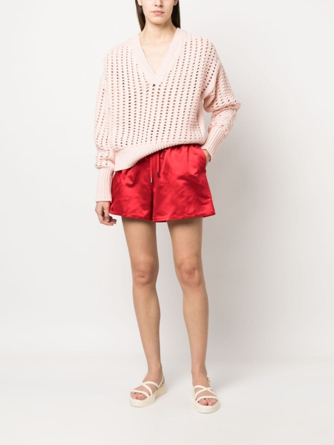 Джемпер рыхлой вязки с V-образным вырезом SA SU PHI, розовый