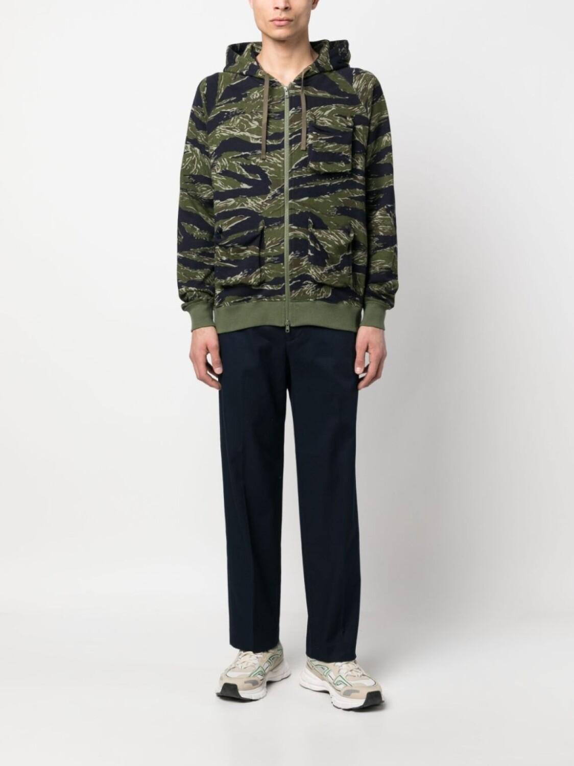 Темно-синий, смесовый хлопок, петли для ремня, нашивка с логотипом сзади, прямой крой, застежка на молнию и крючок и два прорезных кармана на пуговицах сзади.