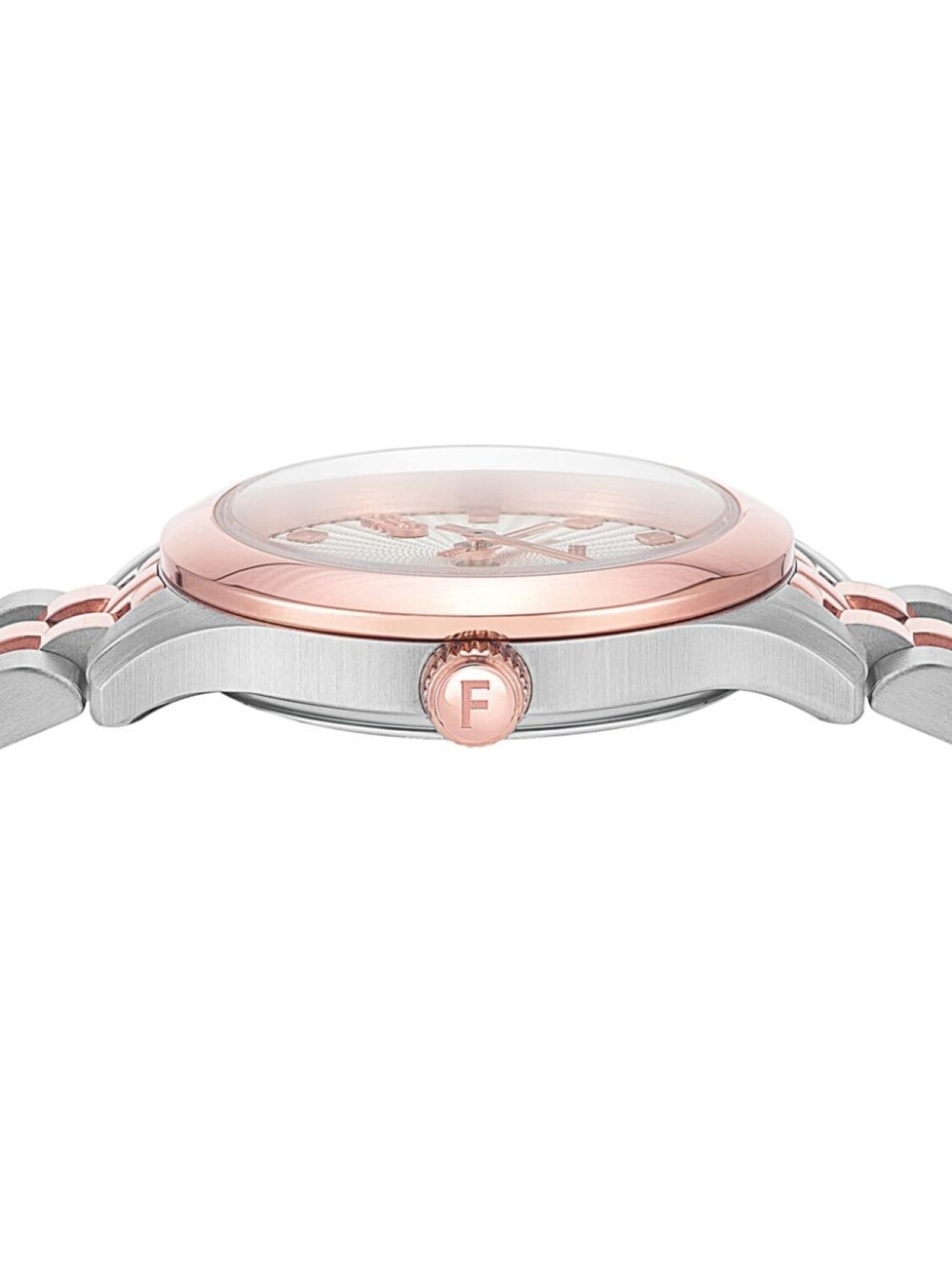 25 мм, корпус из нержавеющей стали с розовым золотом, кварцевый механизм, серебристый, декорированный циферблат, прямоугольные вытянутые стрелки, завинчивающаяся заводная коронка, браслет из нержавеющей стали, застежка-бабочка, водонепроницаемость до 50 метров/5 АТМ, На этот товар распространяется стандартная двухлетняя гарантия от производителя.
