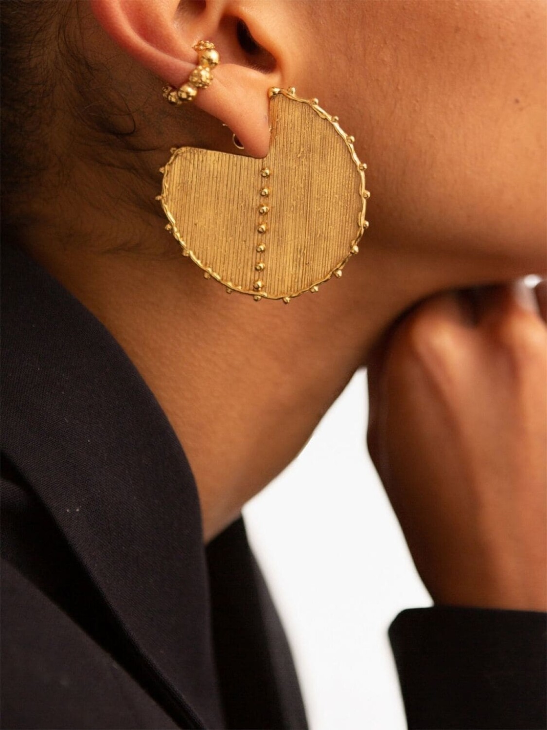 Золотистый, 18-каратное желтое золото, застежка на зажиме и модель круглой формы.