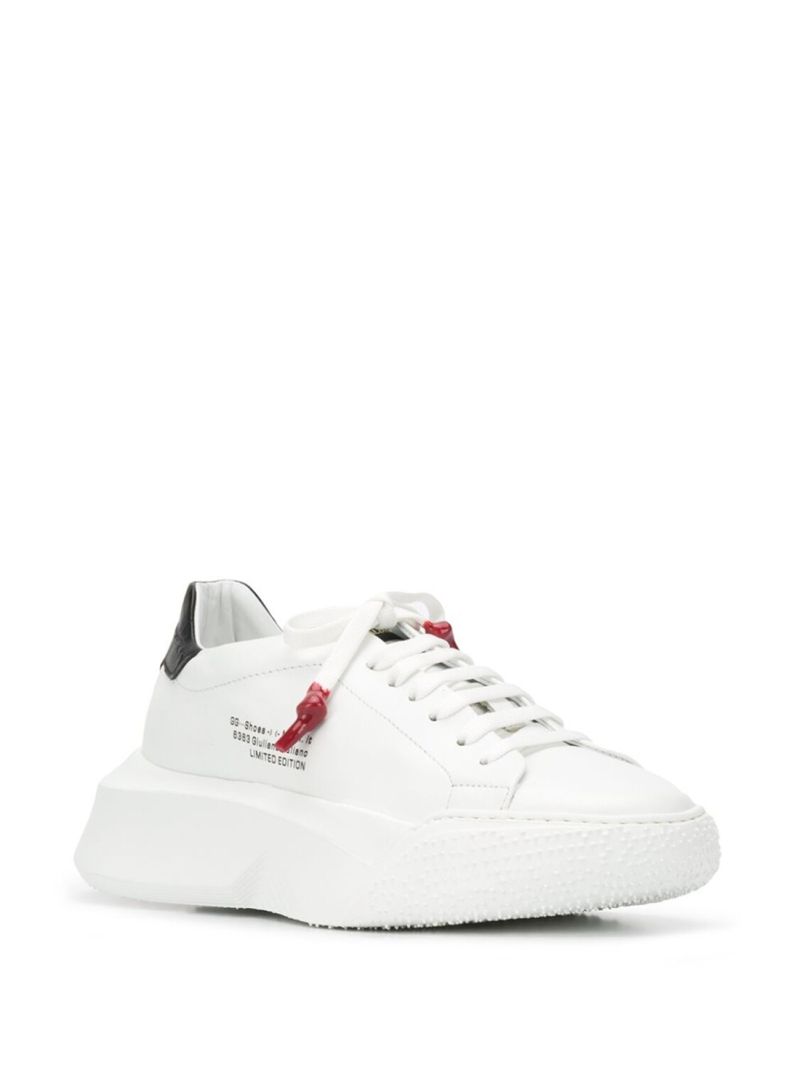 Кроссовки Nemesis на шнуровке от Giuliano Galiano. Закругленный носок, шнуровка спереди, заплатка с логотипом на язычке, контрастная стойка на каблуке и белая резиновая подошва.