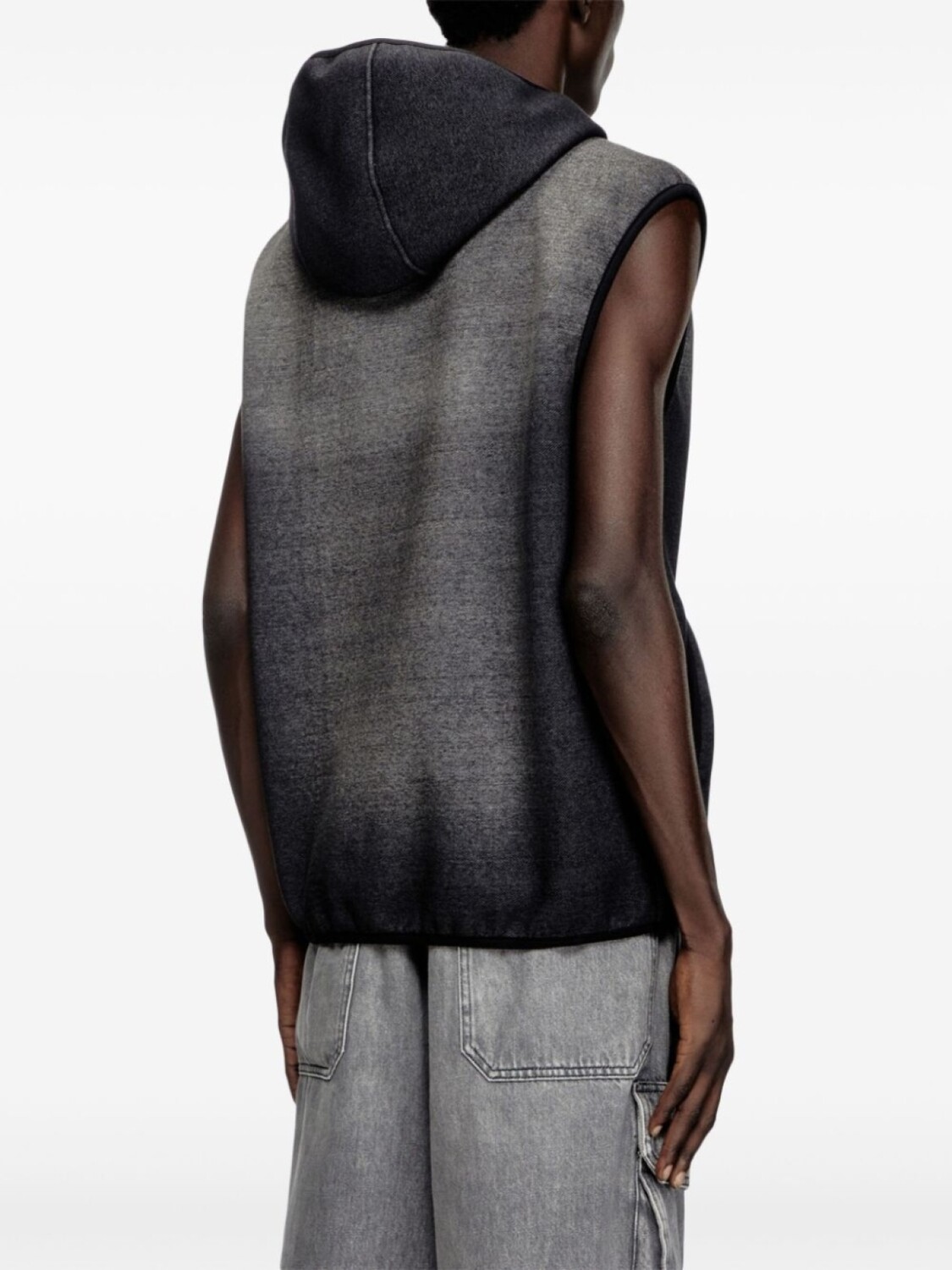Черный, смесовый хлопок, матовое покрытие, застежка на молнии спереди, вышитый логотип на груди, классический капюшон, два прорезных кармана по бокам, без рукавов, прямой подол, Это унисекс-модель. Обратите внимание, что для нее используется мужская размерная сетка.