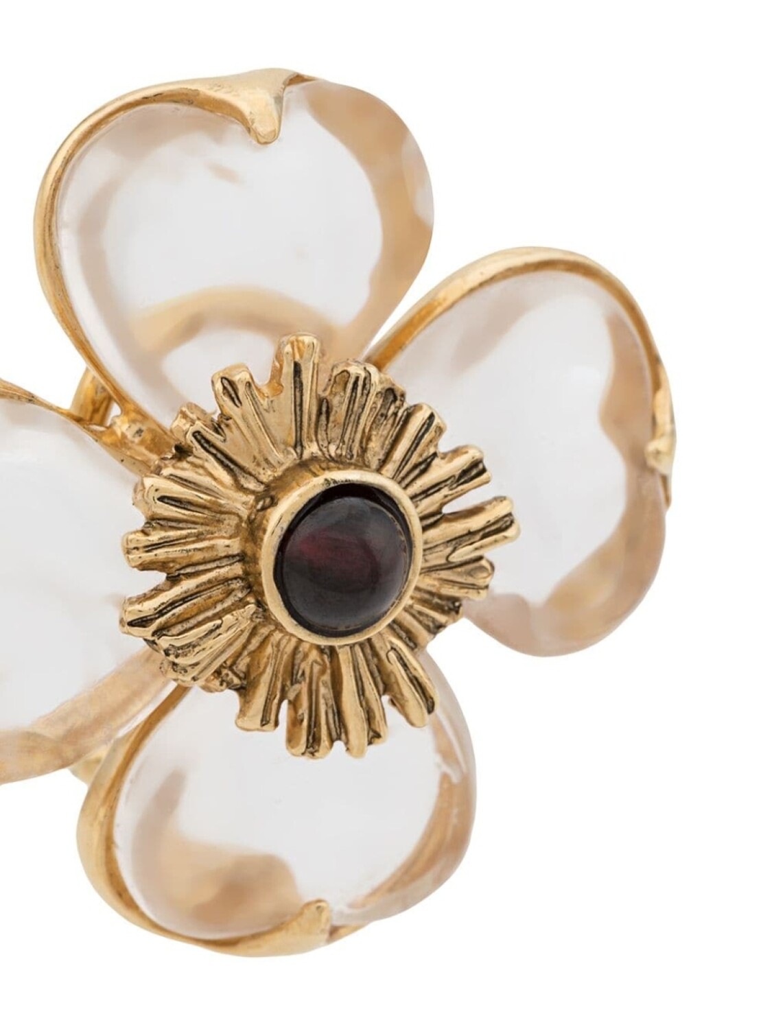 Серьги в виде цветка от Goossens. Застежка на зажиме и золотистая фурнитура с антикварным эффектом.