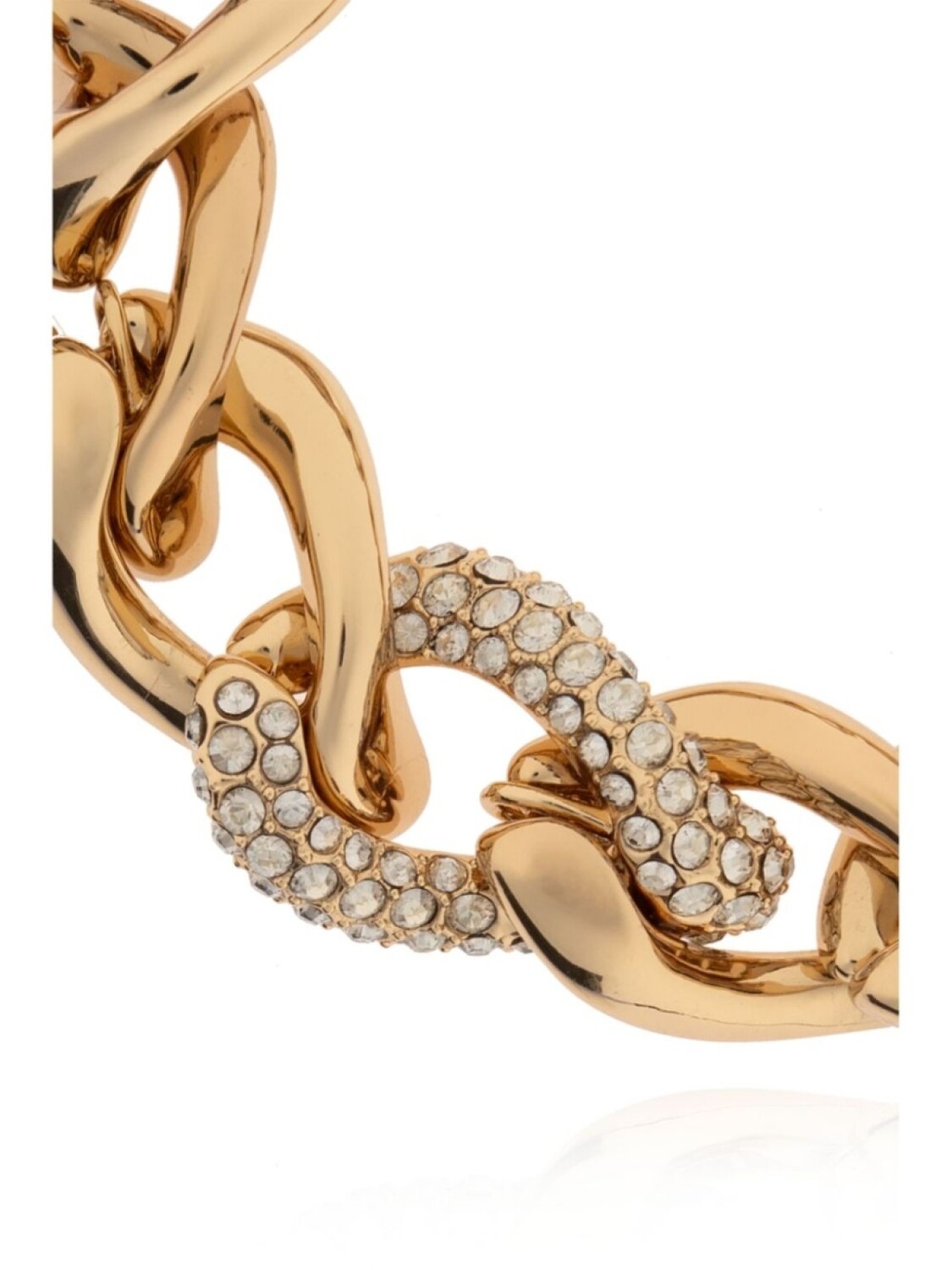 Подробнее о товаре: • золотистый • покрытие из 18-каратного золота • декор в виде вости • кристаллы • закрепка паве • застежка-защелка • Повседневное использование и воздействие внешних факторов могут уменьшить блеск драгоценных камней и поверхностей, покрытых золотом. Для ухода используйте специальные неабразивные средства, предназначенные для чистки ювелирных изделий.