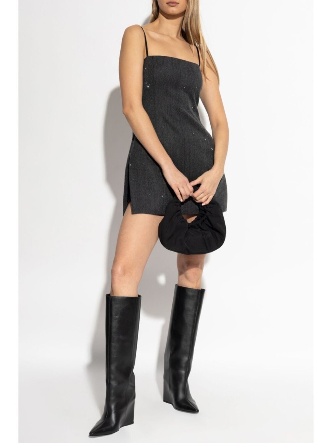 Мини-платье из шерсти, украшенное кристаллами Alexander Wang, черный 81 192₽