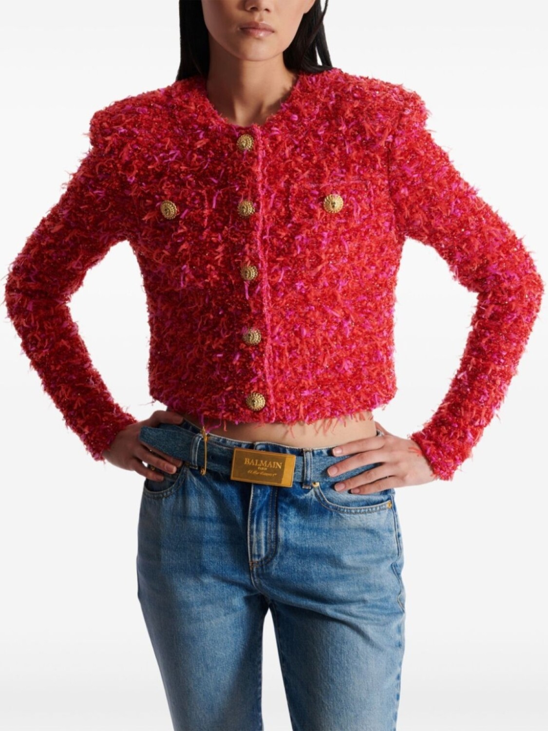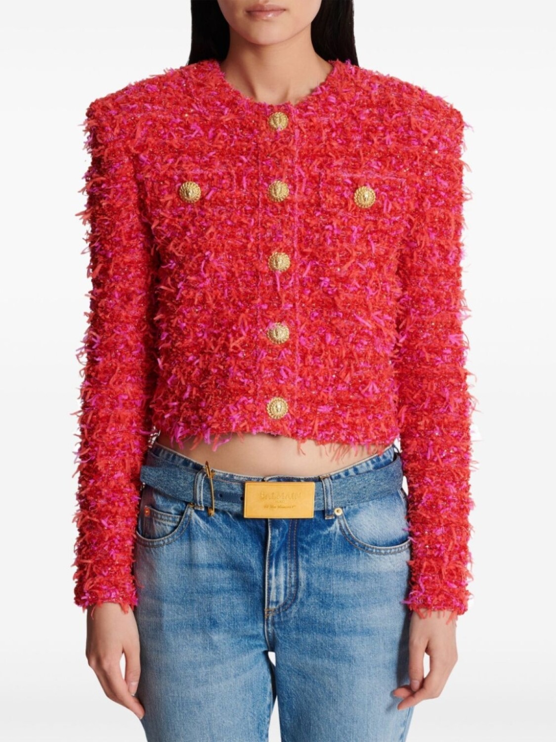 Укороченный твидовый жакет Balmain, красный 109 763₽