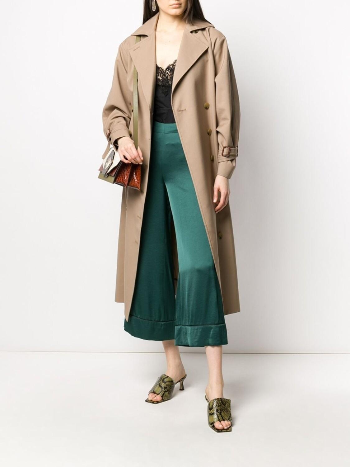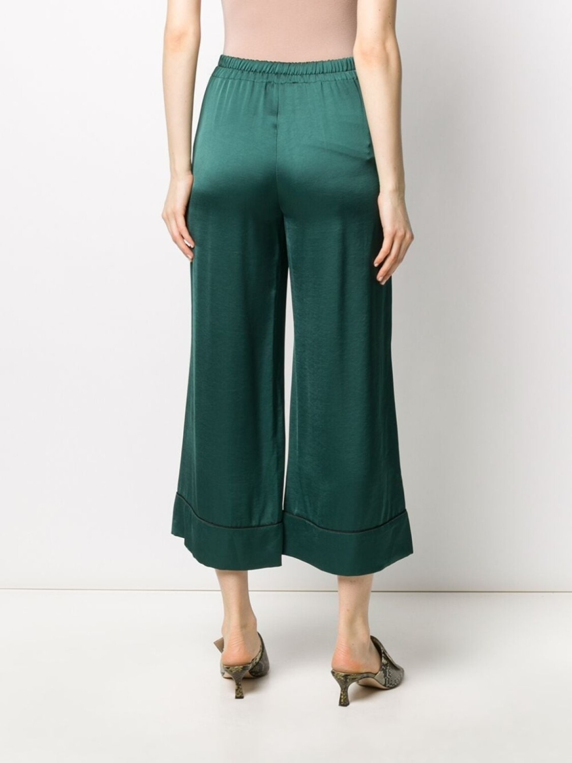 Брюки Phoebe от Blanca Vita. Потайная застежка на молнии, пояс, расклешенный силуэт и укороченная длина. Цвет: зеленый.
