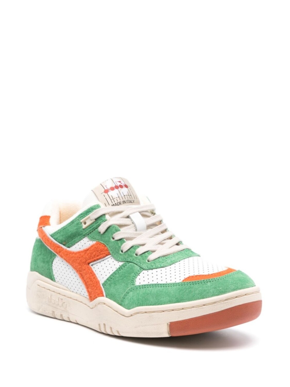 Зеленый/белый, дизайн со вставками, замшевые вставки, перфорация, нашивка с логотипом на язычке, вышитый логотип сзади, уплотненная щиколотка, стелька с логотипом, резиновая подошва, шнуровка спереди