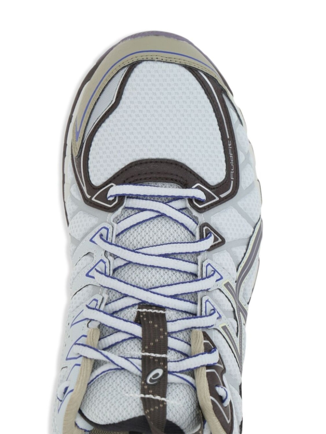 Светло-серая шнуровка спереди, язычок для подтягивания, фирменная амортизация, технология GEL, ребристая резиновая подошва