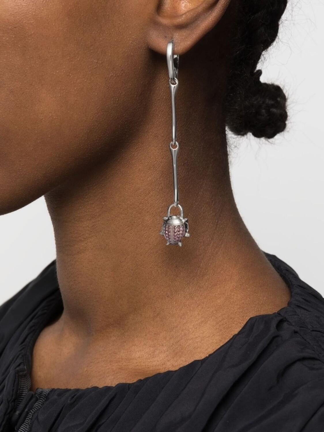 Серебристый, сирень, серебро 925 пробы, серьги-подвески, подвеска и булавочная застежка. В комплект входит одна серьга.