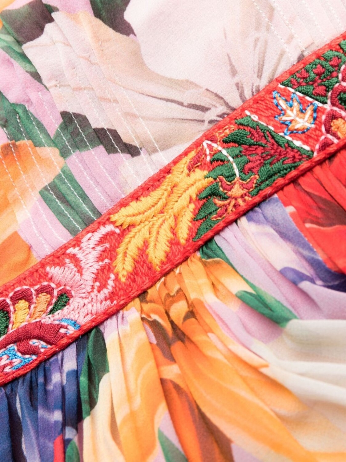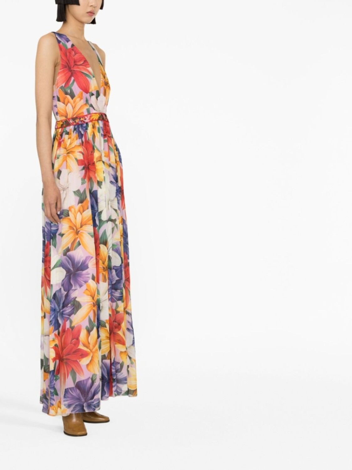 Розовый, разноцветный, шелк, цветочный принт, глубокий V-образный вырез, без рукавов, вышитый узор, плиссированная юбка и длинная модель.