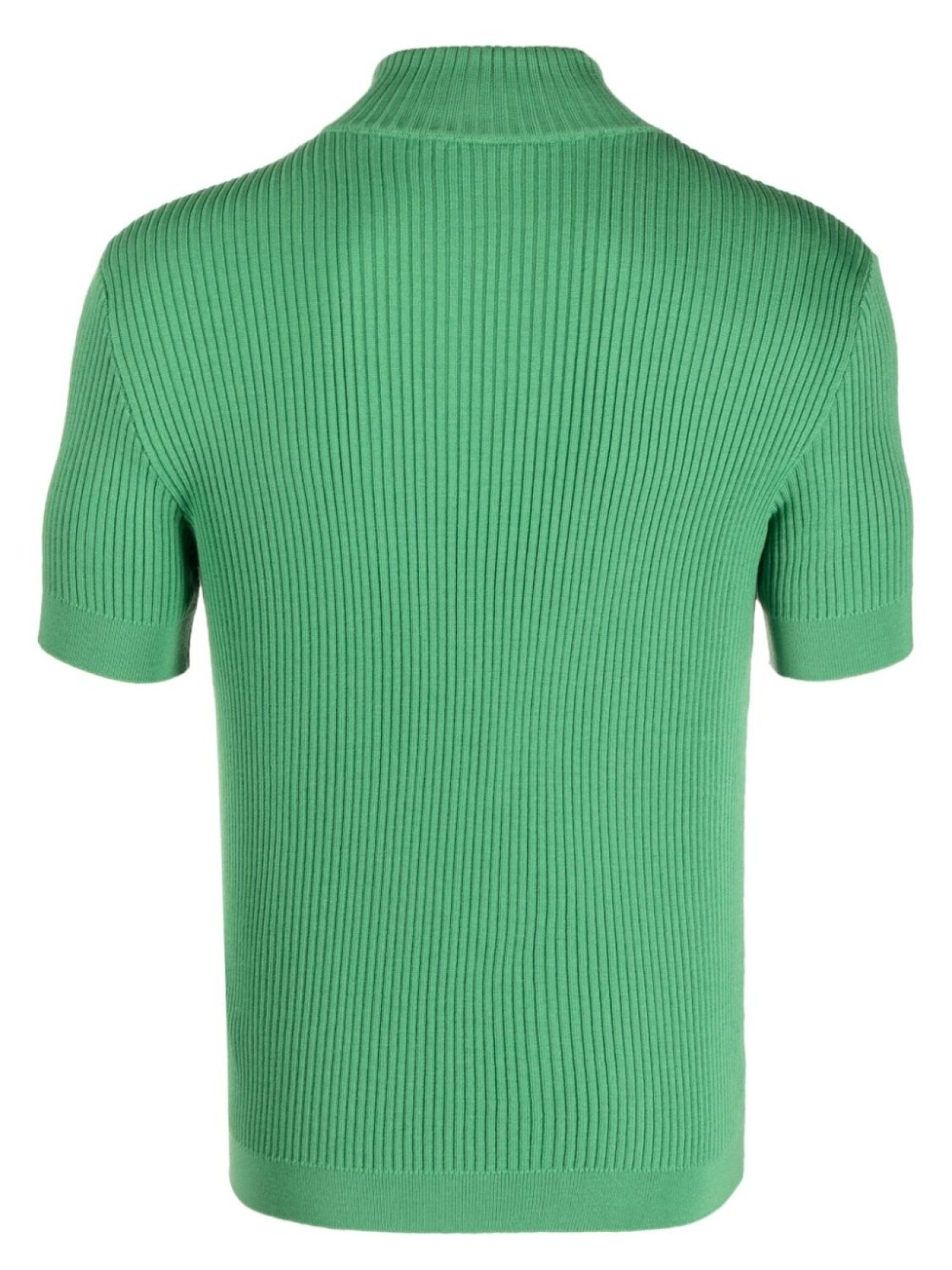 Расцветка Grass Green, шерсть, трикотаж в рубчик, короткая застежка на молнии спереди, короткие рукава и прямой подол.