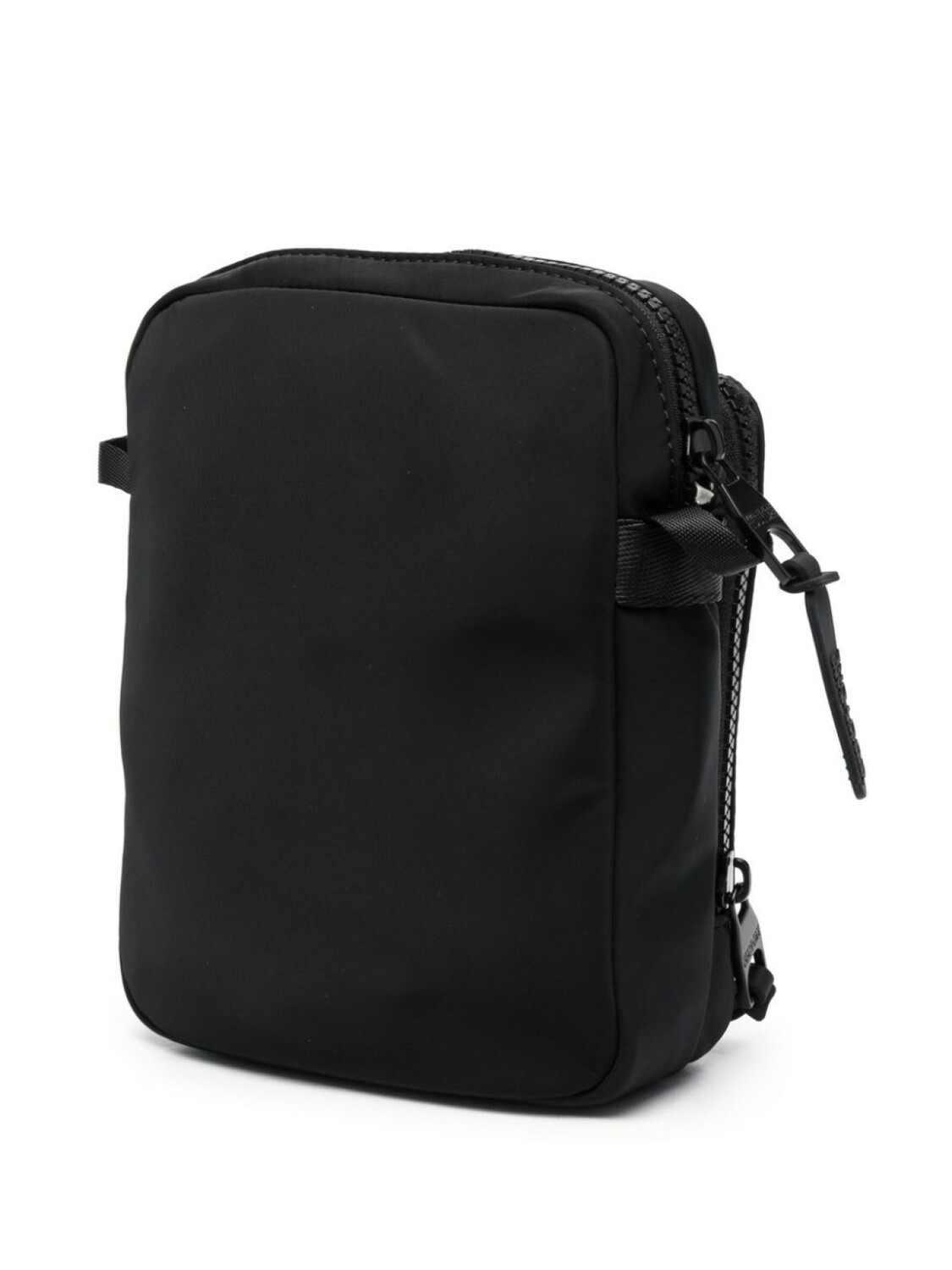 Застежка на молнии сверху, карман на молнии спереди и регулируемый ремень на плечо.
