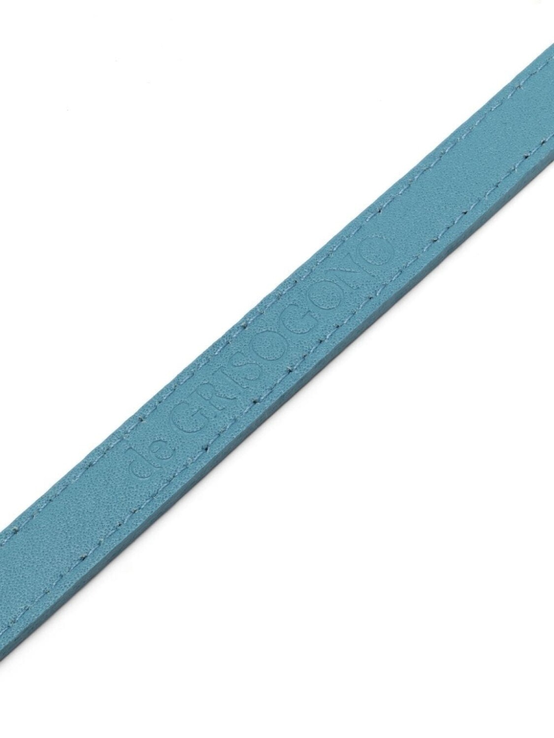 Синий, телячья кожа, браслет в несколько оборотов, застежка на узел и выгравированный логотип.