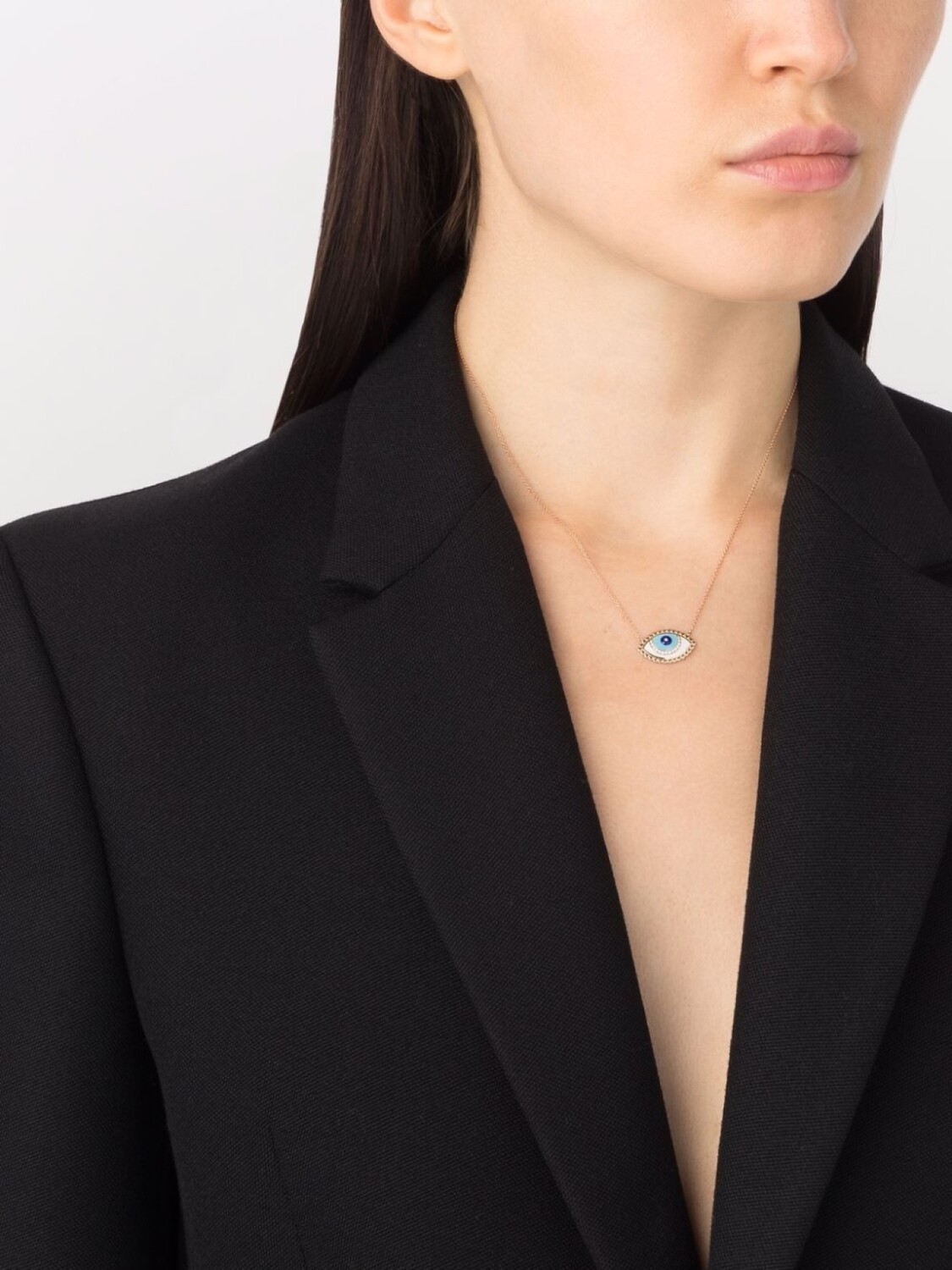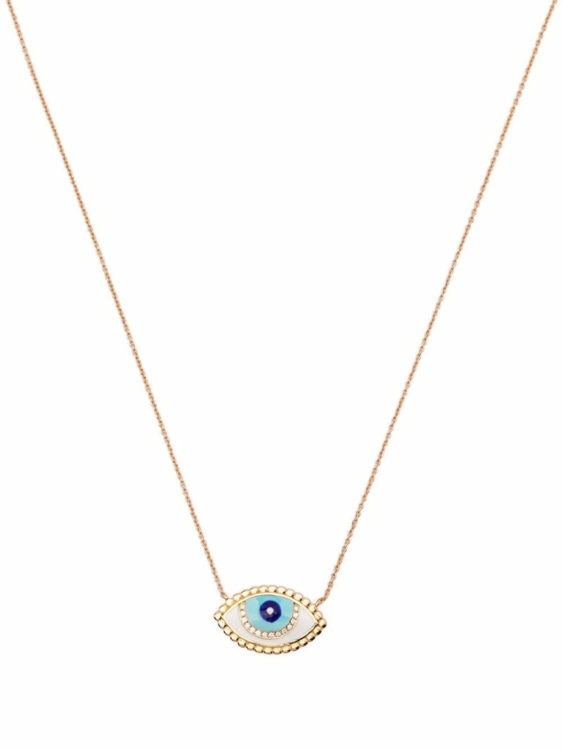 Деталь из эмали, узор с изображением глаза, застежка на зажиме и тонкая цепочка.