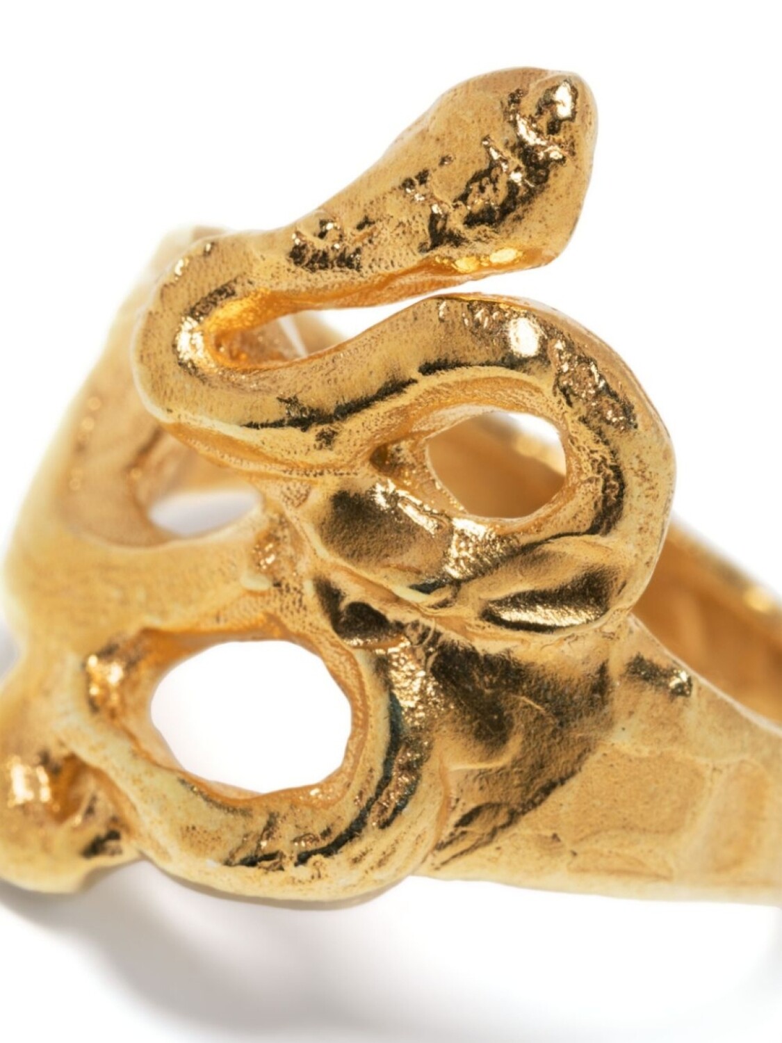 Серебро 925 пробы с покрытием из 9-каратного золота, эффект ручной ковки и знаковый декор Serpenti в виде змеи. Узнать больше о том, какие товары получают отметку «Ответственный выбор», можно из материала «Как мы оцениваем экологичность и этичность».