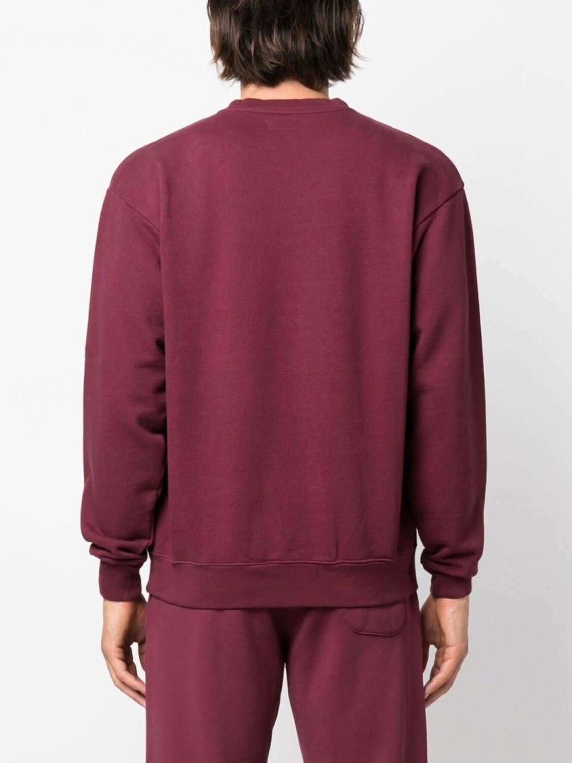 Бордовый, хлопок, вышитый логотип на груди, круглый вырез, длинные рукава и прямой подол.