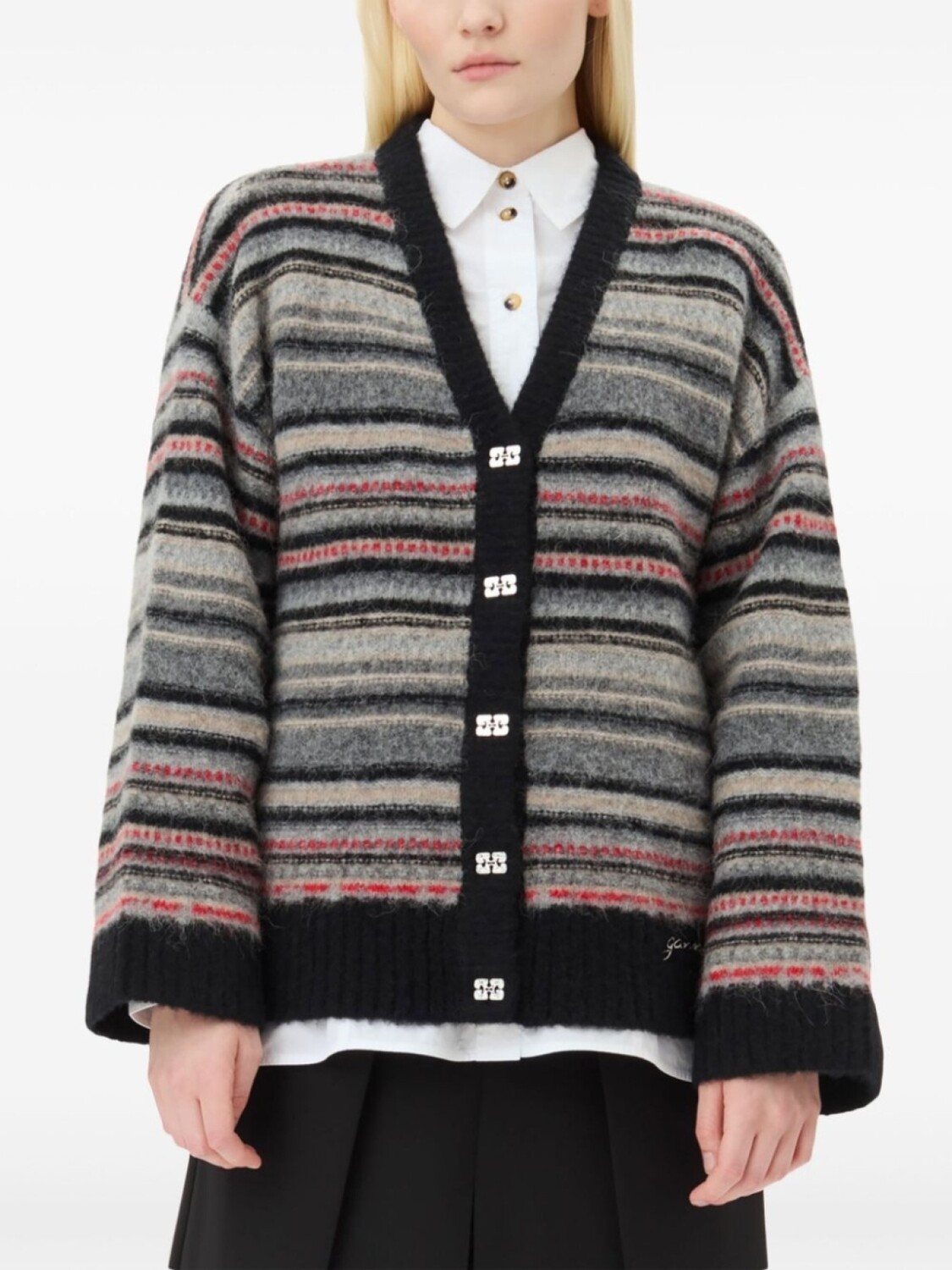Полосатый кардиган на пуговицах GANNI, черный 34 973₽