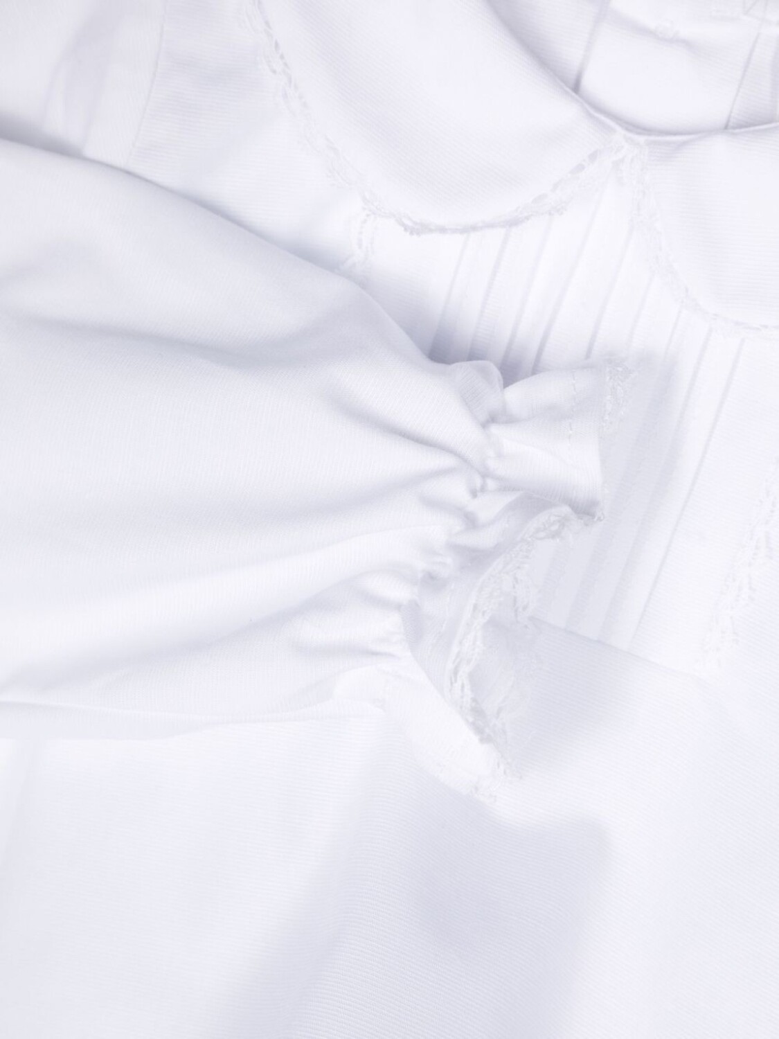 Белый, хлопок, воротник Питер Пэн, складки и манжеты с оборками.
