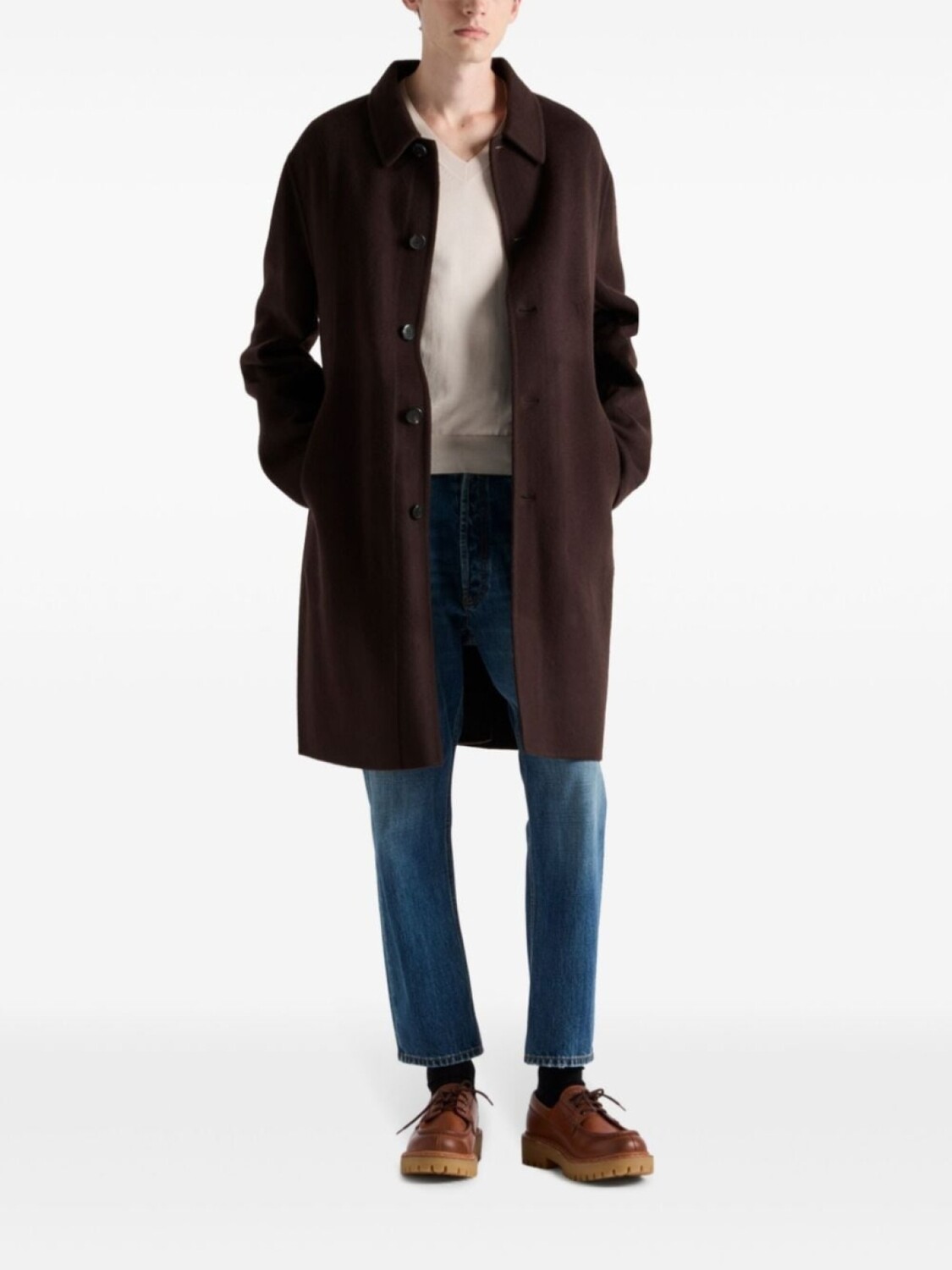 Свитер с V-образным вырезом Prada, нейтральный цвет