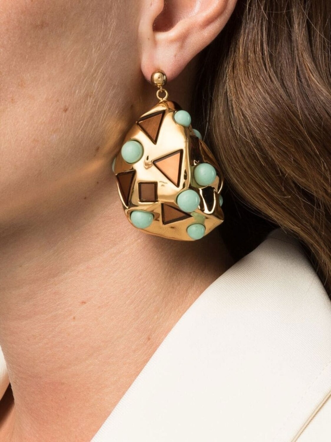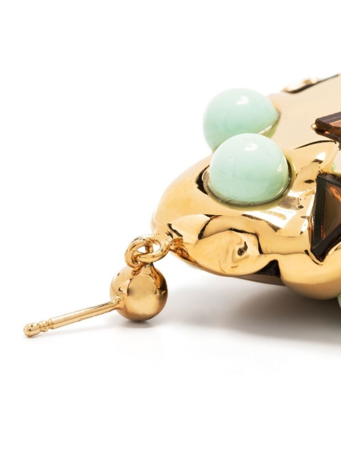 Золотистый, позолота, абстрактный принт, асимметричная форма и серьги-подвески. В комплект входит одна серьга.