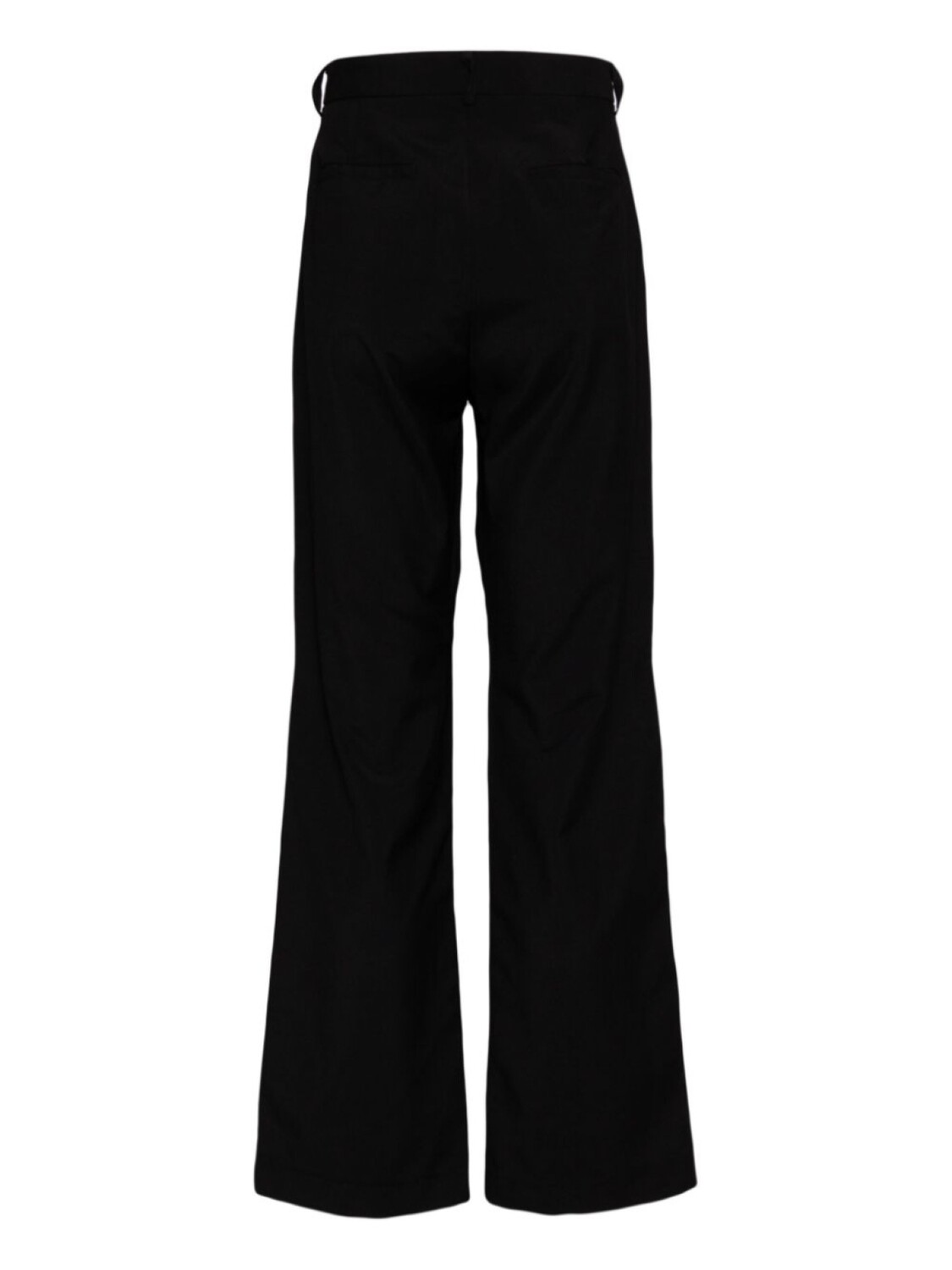 Черный, потайная застежка на пуговицы, крючок и молнию спереди, петли для ремня, два вшитых кармана по бокам, вырезные детали, контрастная отделка, два кармана с листочкой сзади, прямой крой
