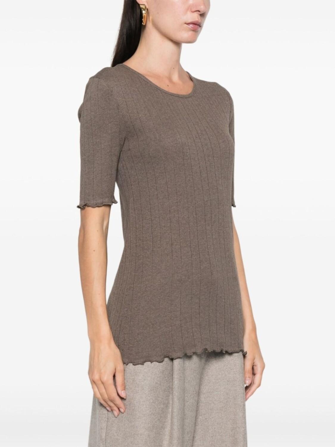 Серо-коричневый, органический хлопок, кружевное вязание, круглый вырез, короткие рукава, присборенный подол, Этот товар как минимум на 50% состоит из органических материалов., Мы сотрудничаем с Good On You — независимым агентством, которое оценивает бренды по отношению к их влиянию на планету, людей и животных. Для того, чтобы получить нашу отметку Conscious, крупные бренды должны набрать минимум четыре балла из пяти (Хорошо), а небольшие бренды — не менее трех из пяти (Начало положено)., Этот товар принадлежит бренду, получившему оценку четыре из пяти (Хорошо) по версии Good on You на момент добавления в FARFETCH. Обратите внимание, что оценка распространяется на бренд в целом и не гарантирует, что товар состоит из экологичных материалов., Узнать больше о том, какие товары получают отметку «Ответственный выбор», можно здесь.