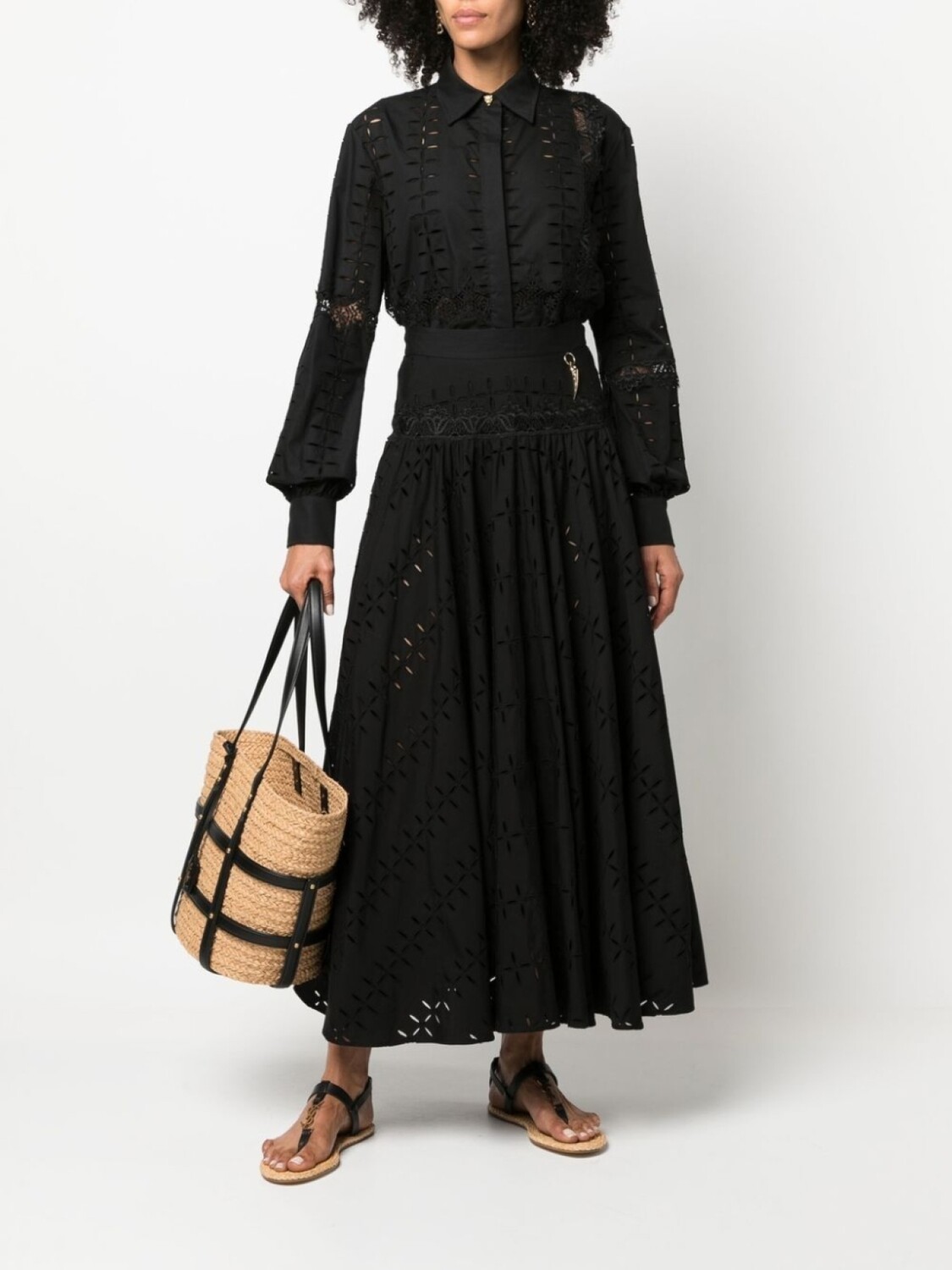 Юбка А-силуэта с английской вышивкой Roberto Cavalli, черный