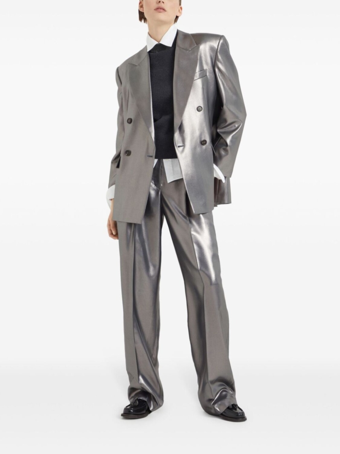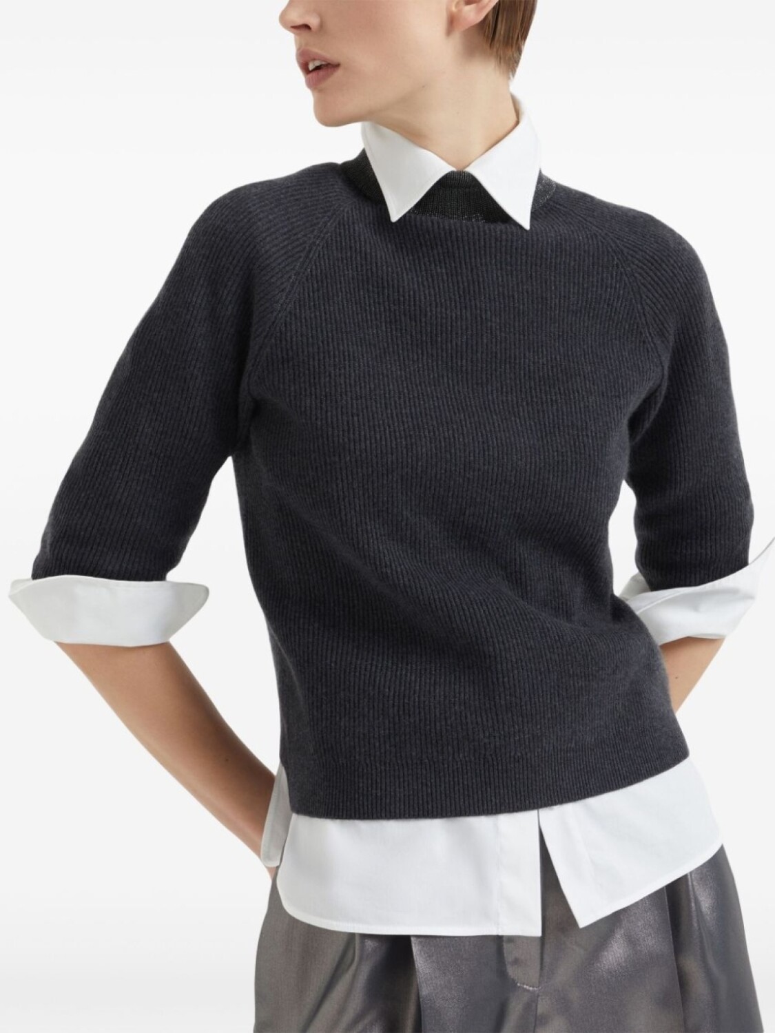 Кашемировый джемпер с высоким воротником Brunello Cucinelli, серый 318 203₽