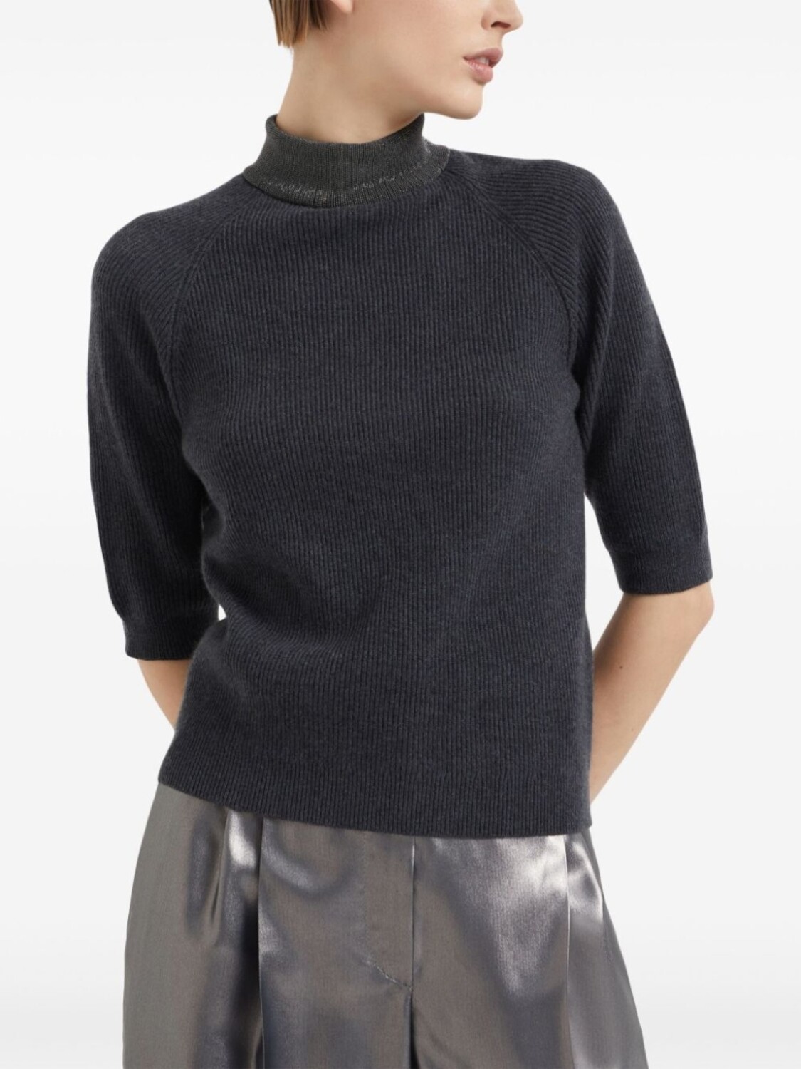Кашемировый джемпер с высоким воротником Brunello Cucinelli, серый