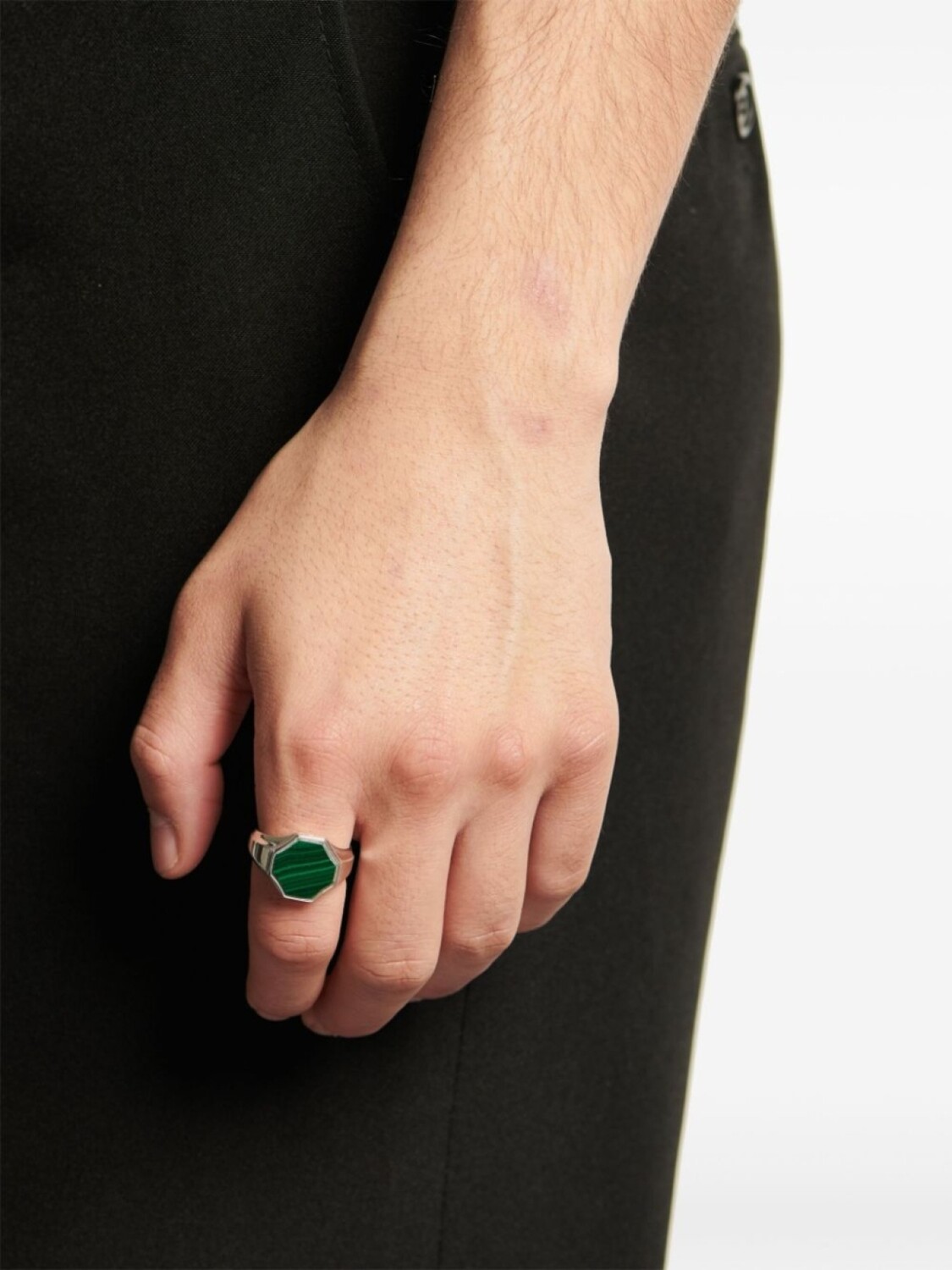Серебро 925 пробы, глянцевая фактура, малахит, выгравированный логотип, без застежки