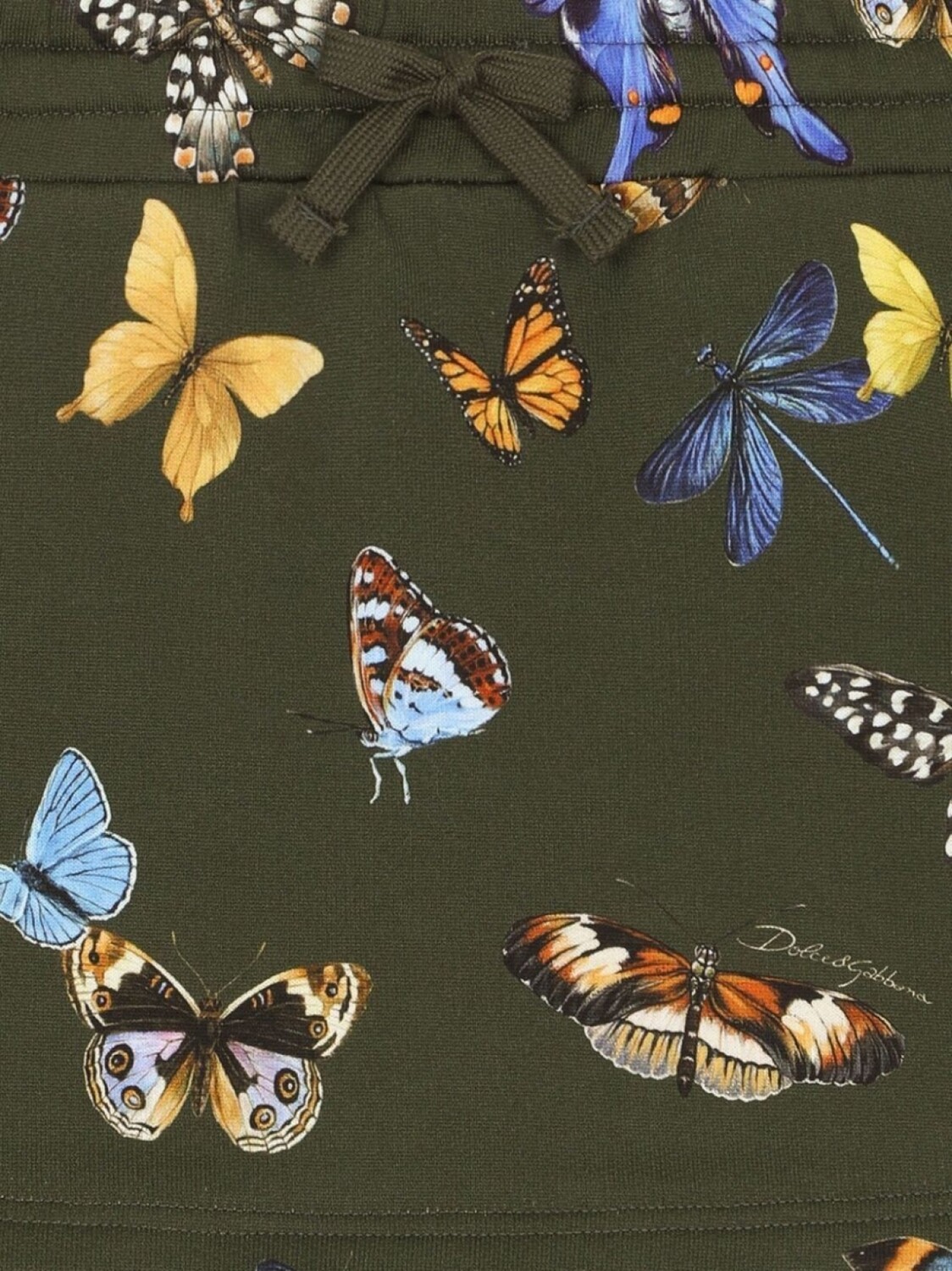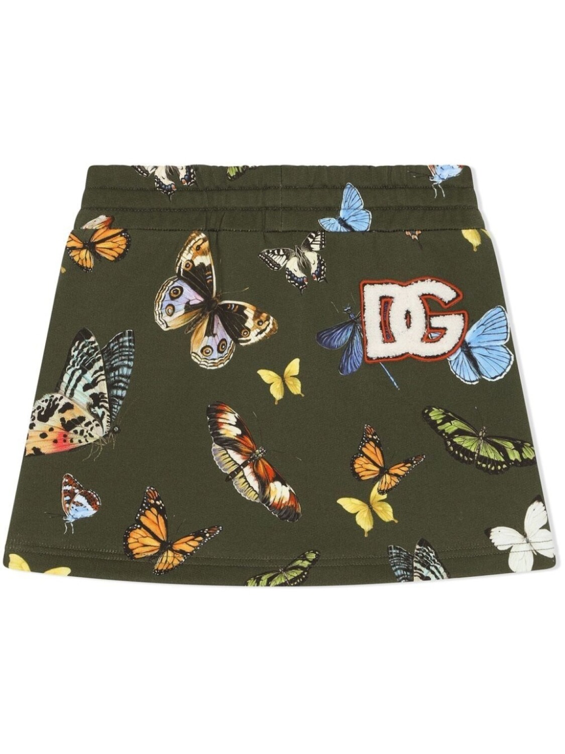Ткань джерси, принт с изображением бабочки, объемный логотип, эластичный пояс и прямой подол.
