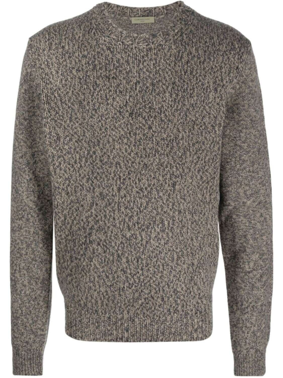 Меланжевый джемпер с круглым вырезом Corneliani, коричневый