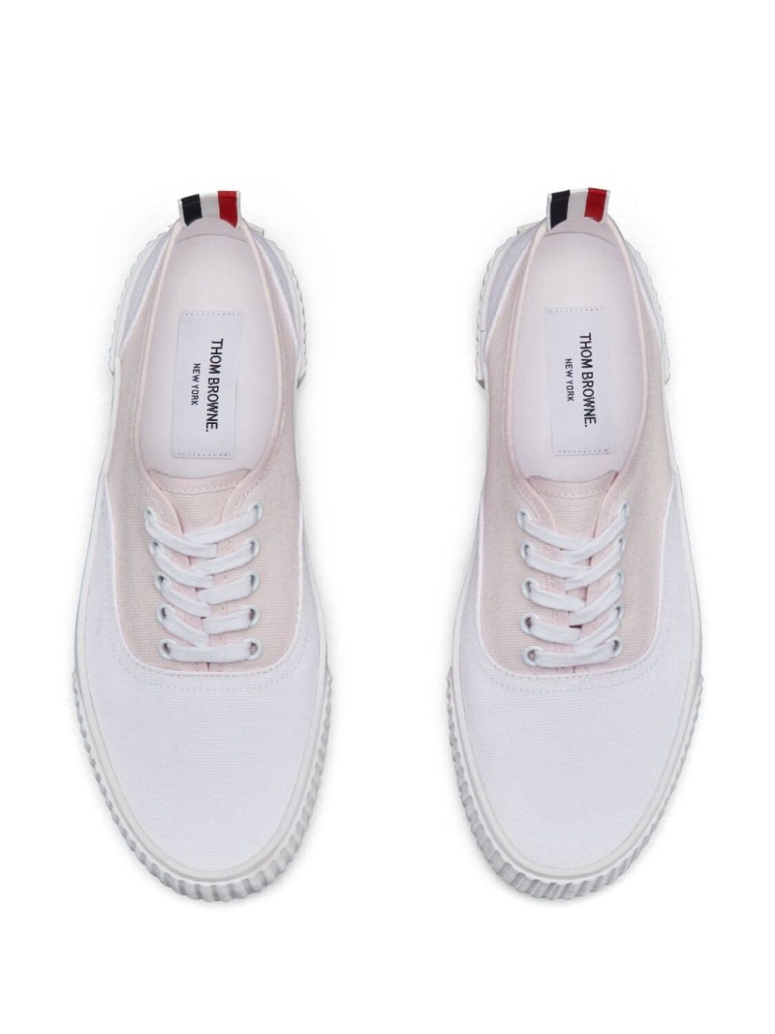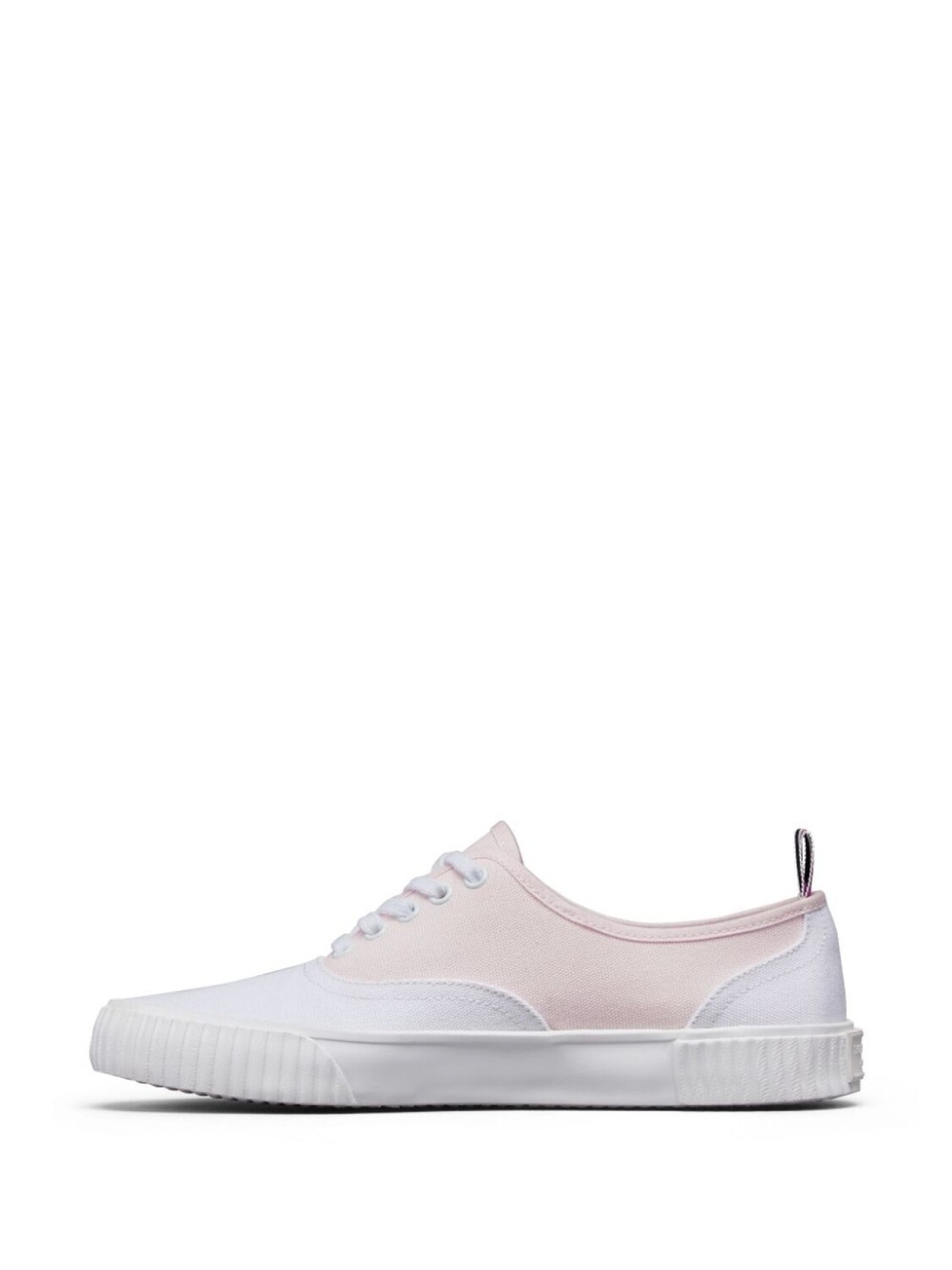 Белый/светло-розовый, канвас, дизайн со вставками, шнуровка спереди, фирменная деталь в полоску, закругленный носок, стелька с логотипом, подошва из вулканизированной резины