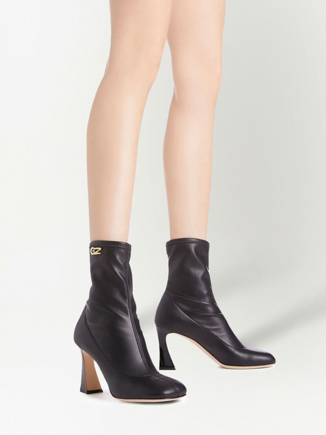 цвет: черный кожаная стелька с логотипом золотистый металлический логотип узкий крой квадратный носок высокий скульптурный каблук модель без застежки кожаная подошва