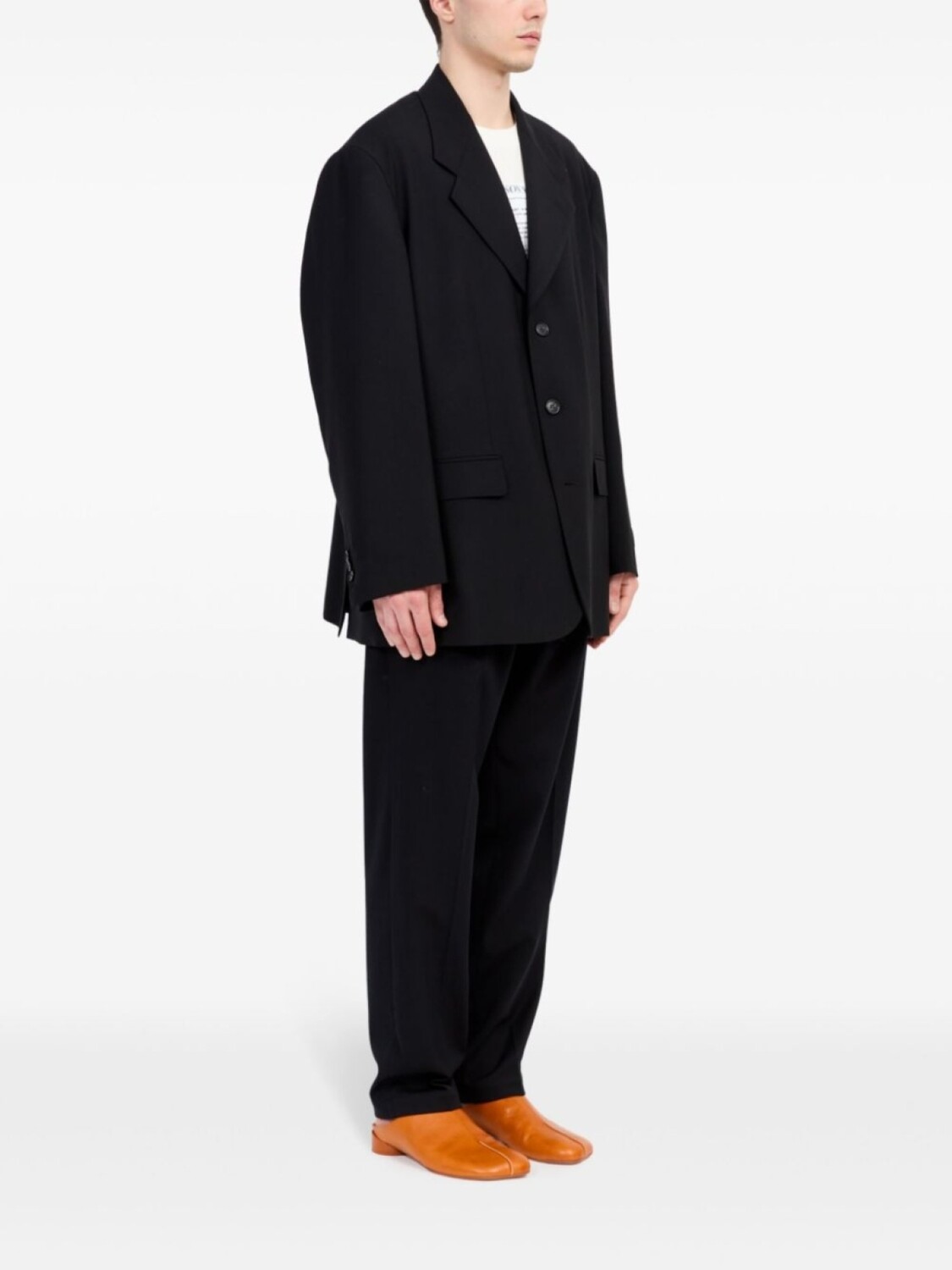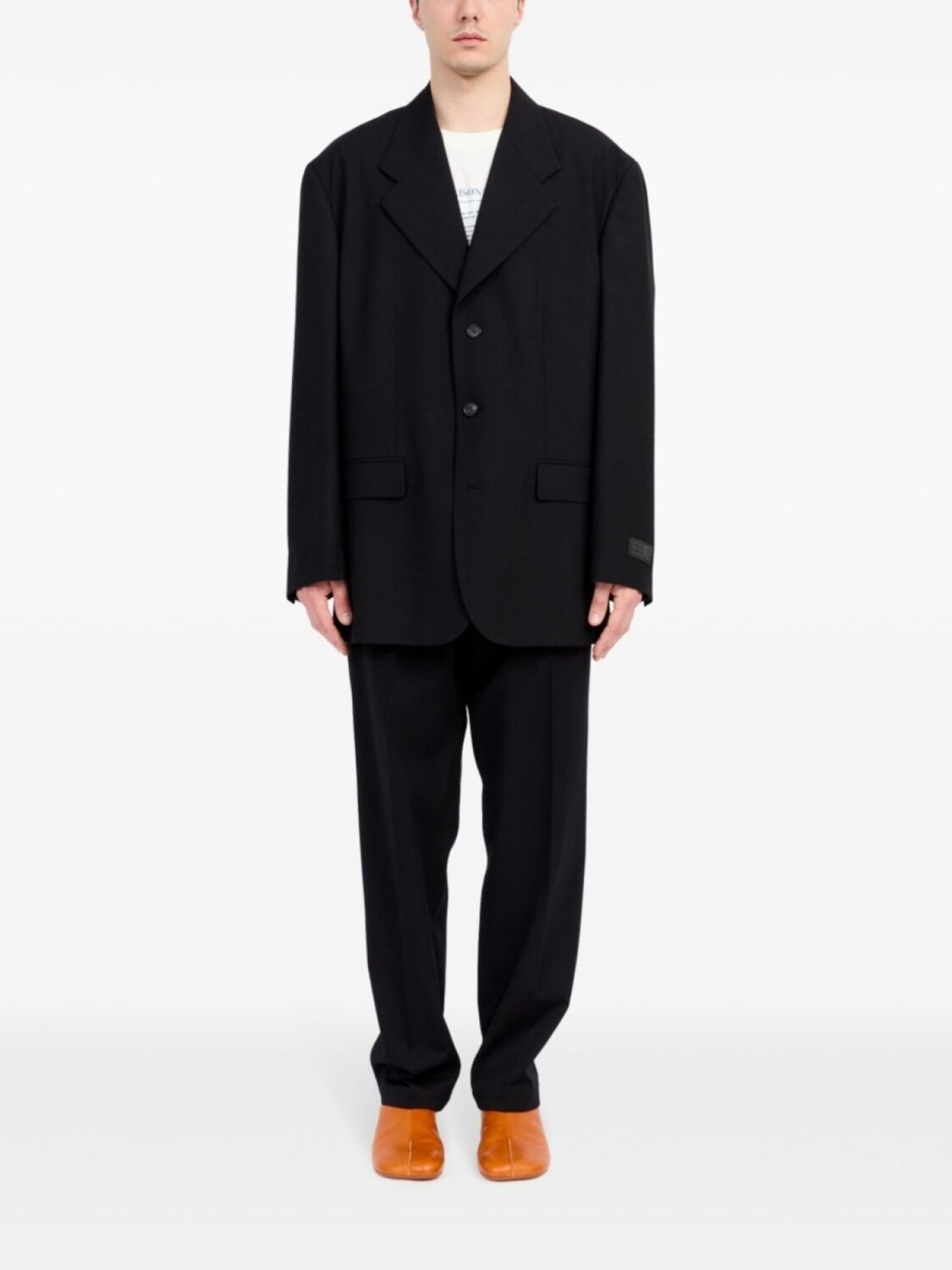 Черный, вирджинская шерсть, застежка на пуговицах спереди, зазубренные лацканы, длинные рукава, нашивка с логотипом на рукаве, два передних кармана с клапанами, Это унисекс-модель. Обратите внимание, что для нее используется мужская размерная сетка.