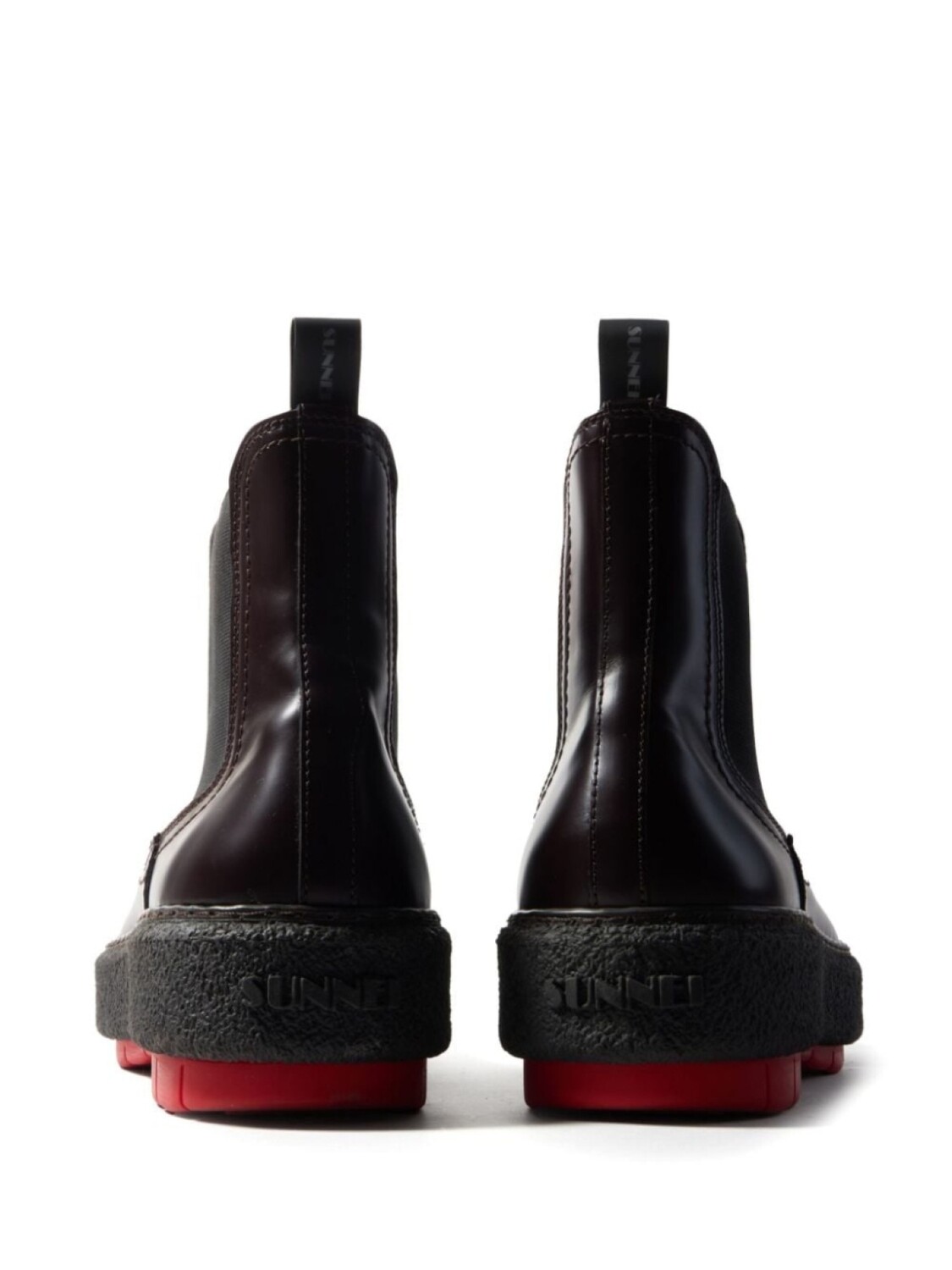 Коричневая кожаная застежка-логотип на пятке тисненый логотип сзади эластичные боковые панели застежка-логотип на язычке контрастная подошва фактурная резиновая подошва подошва-платформа круглый носок длина до щиколотки