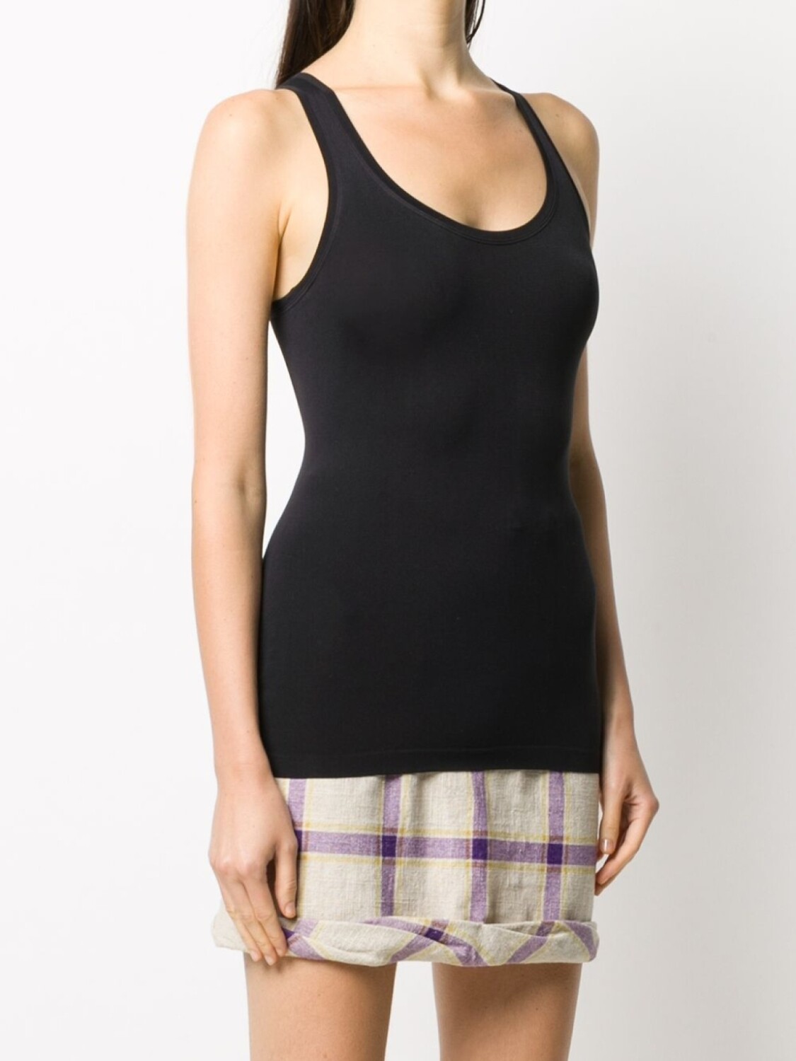Топ без рукавов от HANRO. Вырез-ковш, модель без рукавов, модель по фигуре и прямой подол. Цвет: черный.