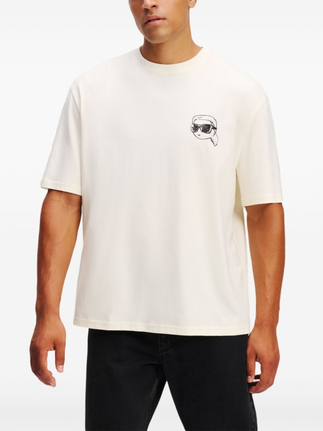Подробнее о товаре: • светло-бежевый • органический хлопок • знаковая нашивка Mini Ikonik Karl • круглый вырез • короткие рукава • Ответственный выбор: В составе этого товара есть органический хлопок. Его производитель не использует химические вещества, пестициды и искусственные удобрения и внедряет методы, которые помогают сохранить биоразнообразие, улучшают качество почвы и сокращают потребление воды.