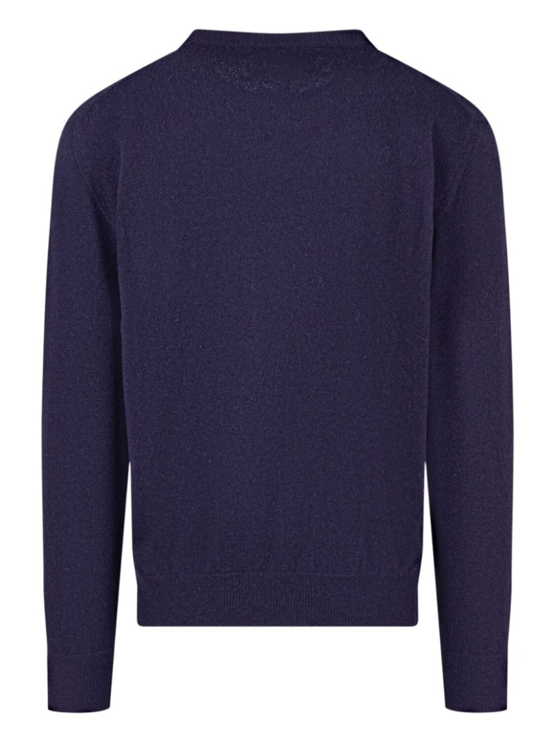 Синий кашемировый трикотаж конструкция круглый вырез горловины длинные рукава прямой подол